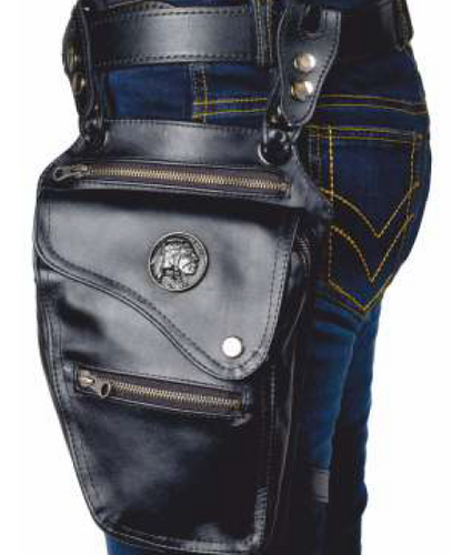 MDM Biker Beintasche Aus Echtleder - Oberschenkel Tasche Mit Totenkopf Prägung