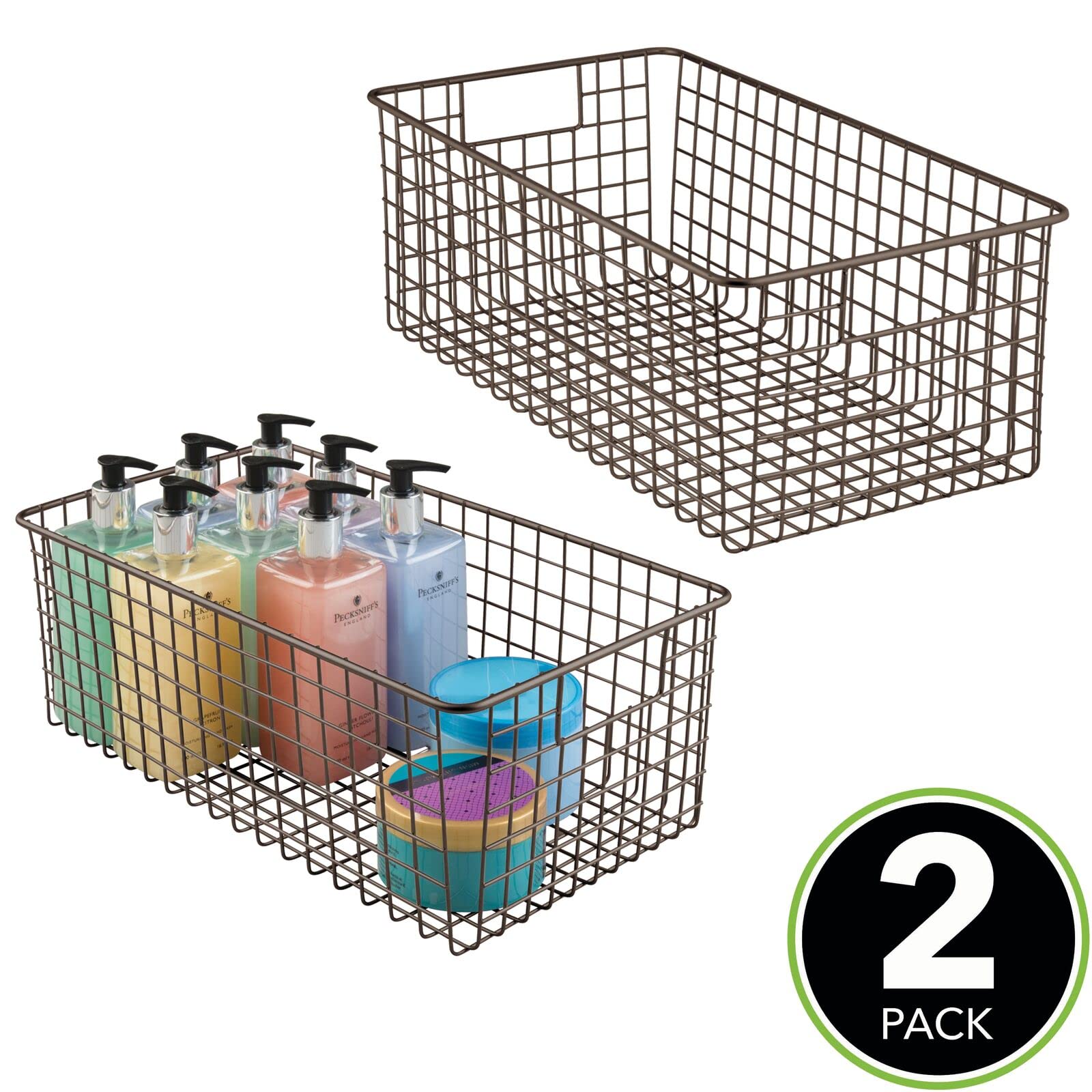 Endlich Ordnung im Bad! Diese beiden Drahtkörbe von mDesign sind die perfekte Lösung für Chaos. Mit integrierten Griffen super praktisch zum Tragen. Das schlanke Design passt perfekt in Schränke, Regale oder auf Arbeitsplatten. Ideal für Kosmetik, Pflegeprodukte, Make-up oder Zahnputzzeug. Aus robustem Draht in edlem Dunkelgrau - sieht nicht nur gut aus, sondern ist auch langlebig. Stapelbar für optimale Platzausnutzung. Perfekt für Bad, Küche, Wohnzimmer oder Büro. Mach Schluss mit dem Suchen und Wühlen - alles hat seinen Platz! Einfach die Körbe befüllen und dich über mehr Ordnung freuen. mDesign steht für durchdachte Lösungen für Zuhause - und diese Körbe beweisen es wieder!