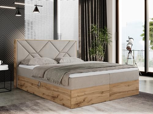 MKS MEBLE Boxspringbett 200x200 Eiche - Mit Bettkasten Und Matratze H4