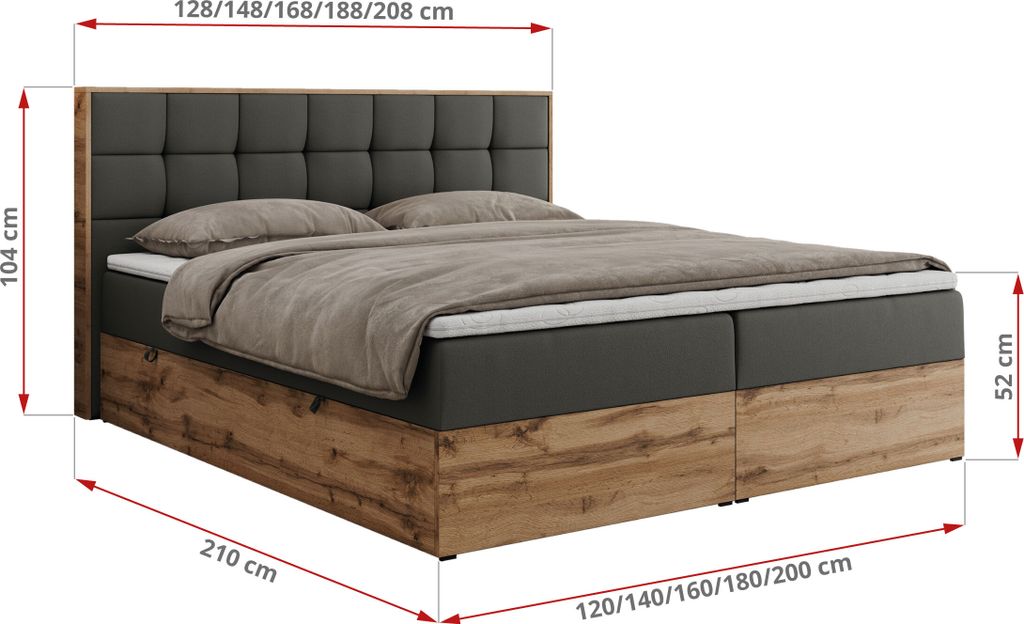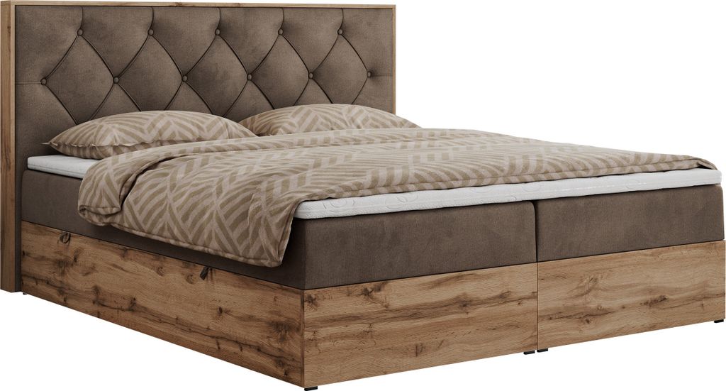 Träumst du von erholsamem Schlaf? Dieses MKS MEBLE Boxspringbett in edler Wotan-Eiche Optik macht's möglich! Mit 200x200cm Größe hast du jede Menge Platz zum Ausstrecken.