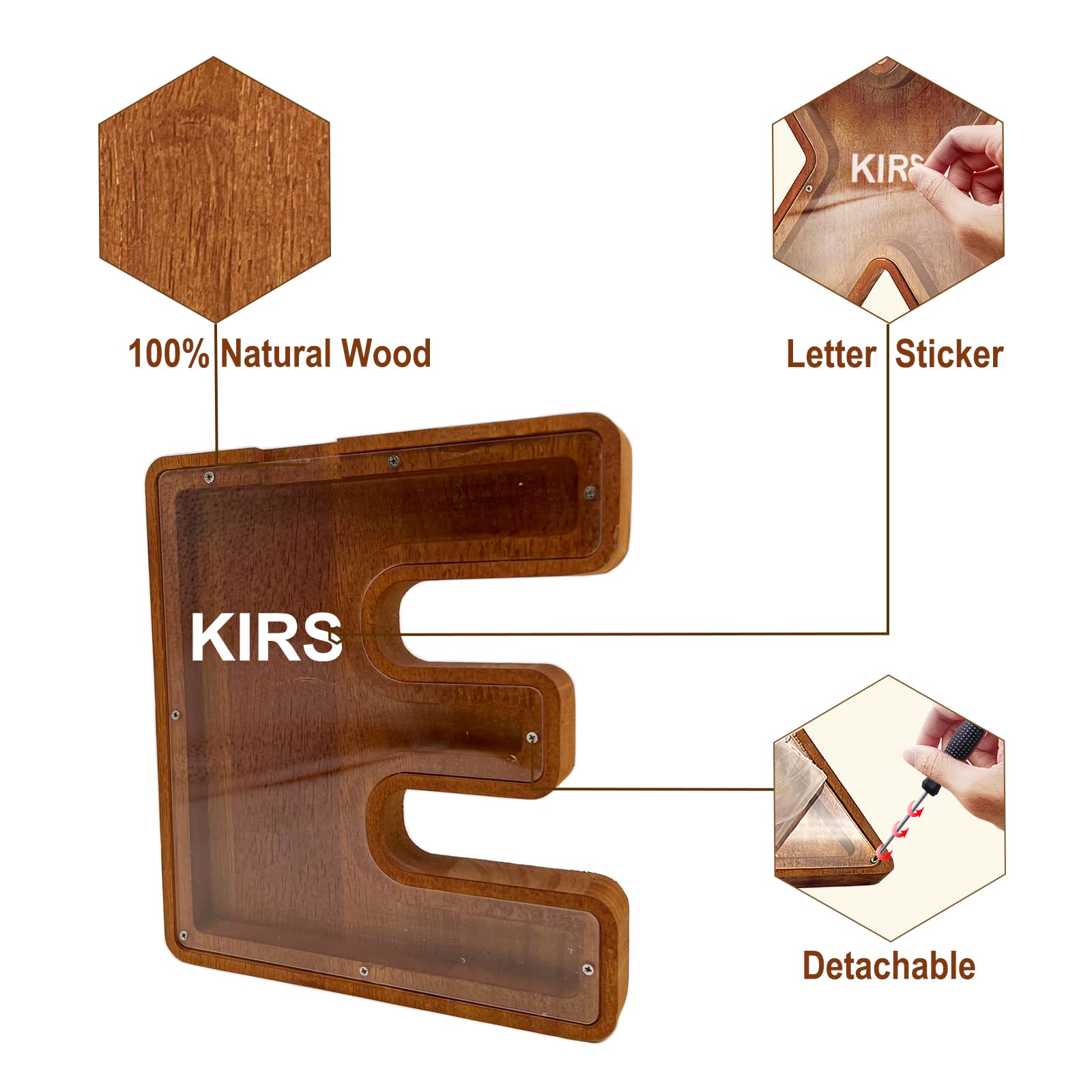 MEDOYOH Buchstabe Spardose Holz - 23cm Alphabet Sparbox Für Münzen & Kleingeld