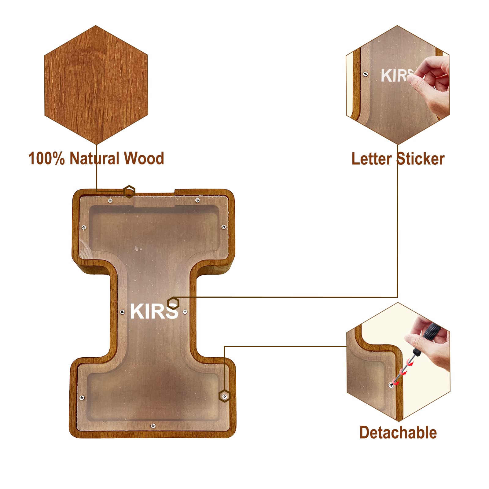 Sparen mal anders! Diese niedliche Buchstaben-Spardose aus Holz ist perfekt um Münzen zu sammeln oder als Deko zu verwenden. Mit 23x23x3 cm bietet sie genug Platz für Kleingeld, Kronkorken oder kleine Schätze. Aus umweltfreundlichem Naturholz mit Acrylplatte - stabil und langlebig. Wähle deinen Lieblingsbuchstaben aus 26 Möglichkeiten oder kombiniere mehrere für persönliche Botschaften. Inklusive Buchstabenstickern zum Individualisieren. Super als Geschenk für Geburtstage, Hochzeiten oder zur Einweihung. Sieht toll aus auf dem Regal, Schreibtisch oder Nachttisch. Viel mehr als nur eine Spardose - ein echter Hingucker!