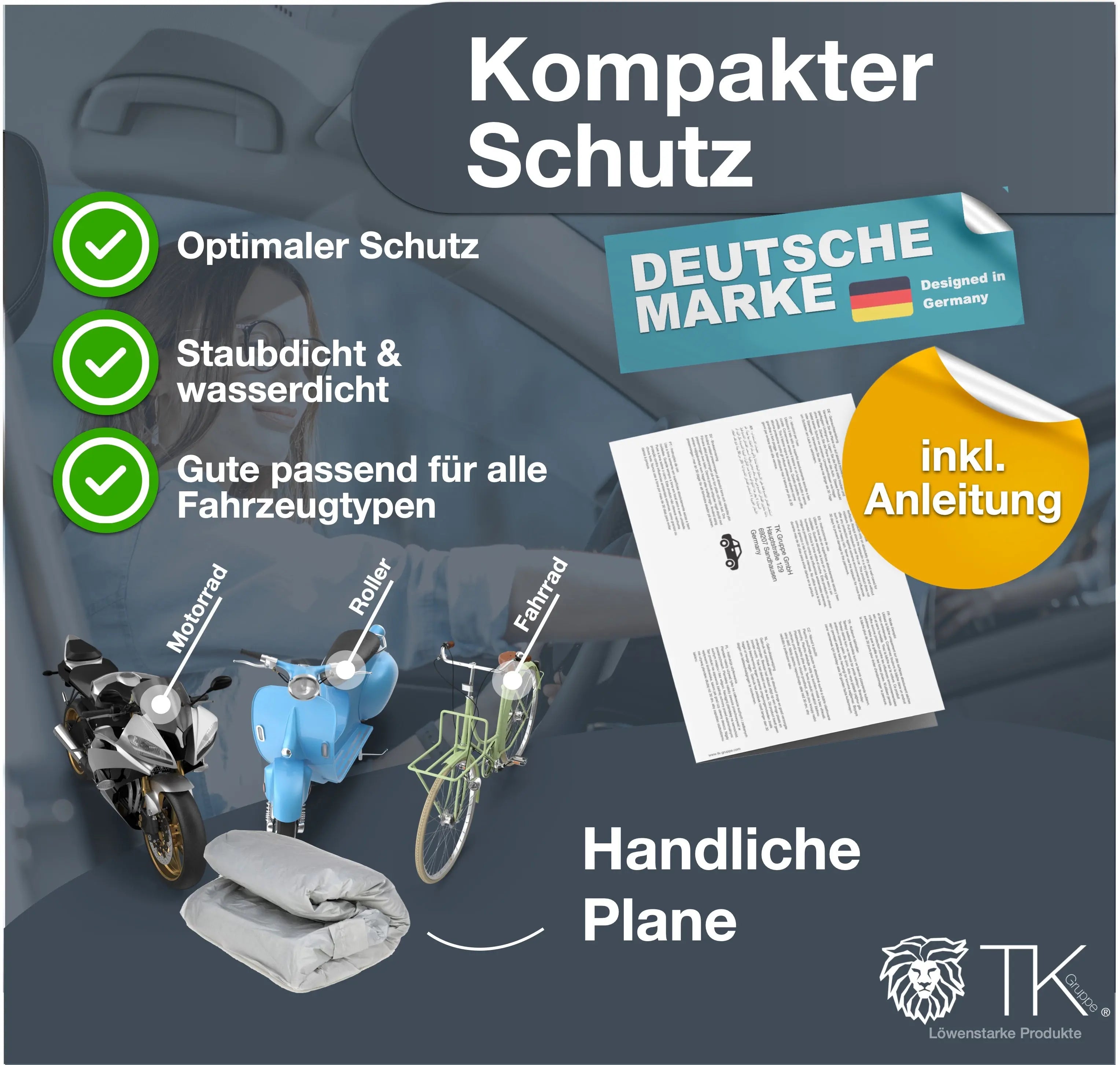 Dein Bike steht draußen und du machst dir Sorgen? Mit dieser MIDINGCHAI Motorradabdeckung kannst du ganz entspannt sein! Die XXL-Größe (245x105x125 cm) passt perfekt für die meisten Motorräder, Roller und Mopeds bis ca. 2,3 Meter Länge. Aus super robustem 420D Oxford-Gewebe mit silberner PU-Beschichtung innen - das ist Qualität, die man sieht und spürt! Vollkommen wasserdicht dank Lotuseffekt und Doppelnaht-Konstruktion - da kommt bei Regen oder Schnee garantiert nichts durch. UV-beständig schützt sie vor Sonnenschäden, und staubdicht hält sie dein Bike sauber. Der elastische Bund unten und die Schnallenriemen sorgen für bombenfesten Halt, selbst bei starkem Wind. Praktischer Handgriff oben zum einfachen Abnehmen, reflektierende Streifen für bessere Sichtbarkeit in der Dunkelheit, und sogar ein Schlossloch ist integriert! Wird mit praktischer Aufbewahrungstasche geliefert - einfach zusammenfalten und verstauen. Ob Sommer, Herbst, Winter oder Frühling - dein Motorrad ist immer bestens geschützt! Einfach überziehen, festzurren und beruhigt schlafen gehen - deine Maschine ist in sicheren Händen!