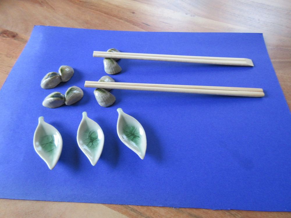 MIUFA Essstäbchenhalter Keramik - 5 Süße Glückskatzen In Geschenkbox