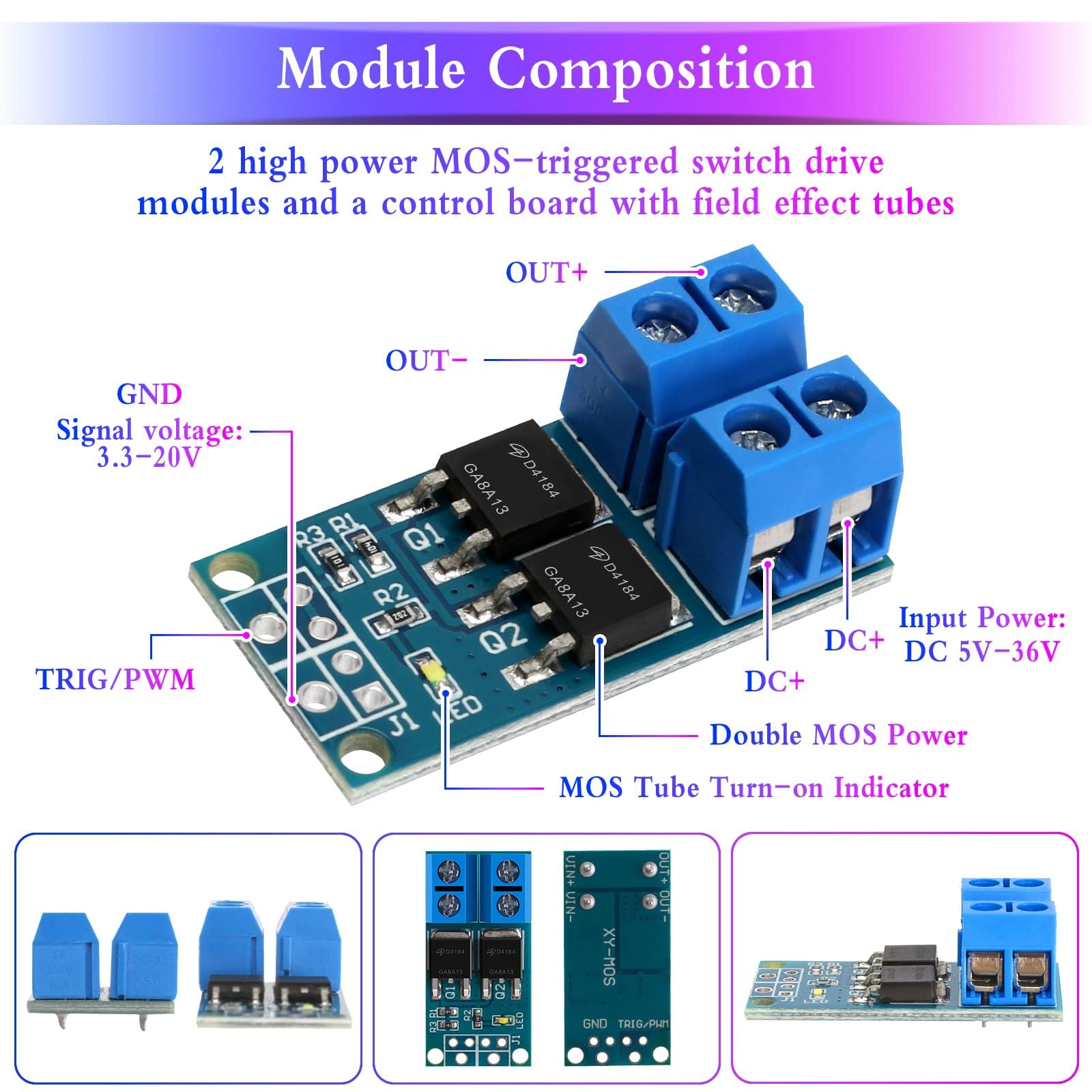 Moin Technik-Freund! Dieses MOSFET Schaltmodul ist ein echter Allrounder für deine Elektronik-Projekte. Mit 3V-36V Eingangsspannung und satten 22A Stromstärke - da kannst du so einiges damit steuern!\n\nPerfekt für Arduino, Raspberry Pi und andere Mikrocontroller. Die 2,54mm Pins machen die Verkabelung super einfach - kein Gefummel mit winzigen Anschlüssen. Und das Beste: Optische Isolierung sorgt dafür, dass Steuer- und Laststromkreis sauber getrennt sind.\n\nDamit kannst du Motoren dimmen, LEDs steuern, Heizungen regeln - der Phantasie sind kaum Grenzen gesetzt! Der Steuerstrom liegt bei nur 1-5mA, das kriegt jeder Mikrocontroller problemlos hin.\n\nEinfach an die IO-Pins anschließen, mit PWM die Geschwindigkeit oder Helligkeit regeln und schon läuft's! Das schwarze Gehäuse aus Kunststoff sieht dabei noch richtig professionell aus.\n\nOb für Roboter, Beleuchtungsprojekte oder industrielle Anwendungen - dieses Modul ist extrem vielseitig. Und die Qualität stimmt: Kommt nagelneu und funktiert einwandfrei.\n\nAlso worauf wartest du? Schnapp dir das Modul und bring dein nächstes Projekt auf das nächste Level! Einfacher geht's wirklich nicht - stecken, verkabeln, programmieren und staunen!