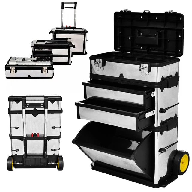 VELLEMANN Werkzeugtrolley MP70 | 62cm Höhe Kunststoff | Mobiler Werkzeugkoffer Mit Klappbarem Griff
