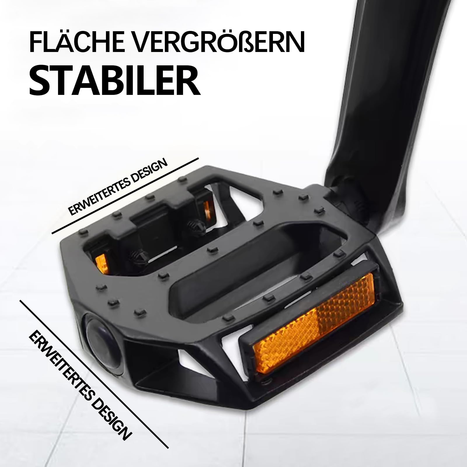 Brauchst du neue Pedale für dein Bike? Dieses Paar Alu-Pedale ist perfekt für Mountainbikes, Cityräder und E-Bikes! Aus hochfester Aluminiumlegierung mit TPR-Gummi-Einlagen für maximalen Grip - selbst bei Nässe rutscht dein Fuß nicht ab. Die Reflektoren auf beiden Seiten erhöhen deine Sichtbarkeit bei Dunkelheit. Mit 380 Gramm pro Paar sind sie leicht aber stabil. Die vergrößerte Pedalfläche gibt deinem Fuß besseren Halt und spart Energie beim Treten. Einfache Installation - L für links, R für rechts markiert. Passt für fast alle Fahrradtypen: MTB, Rennrad, Falträder, Trekking-Bikes... Das retro-moderne Design in Silber oder Schwarz unterstreicht deinen individuellen Look. Ob beim täglichen Pendeln, sportlichen Ausfahrten oder gemütlichen Touren - diese Pedale machen einfach Spaß! Hol dir jetzt den besseren Halt für dein Bike!