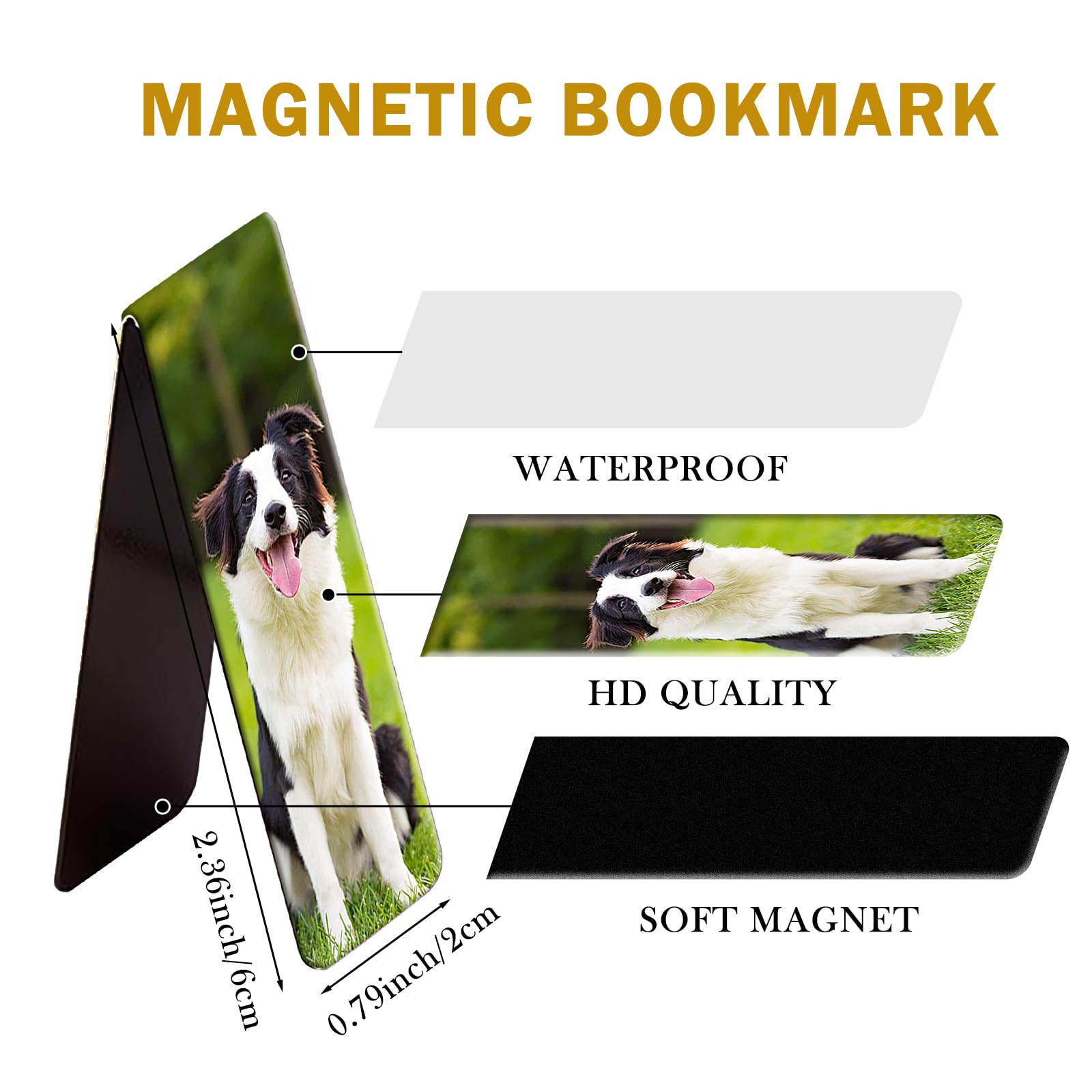 Nie wieder verlorene Seiten mit diesen niedlichen magnetischen Lesezeichen! Das 30-teilige Set mit verschiedenen Hunde-Motiven begeistert alle Bücherwürmer. Jedes Design ist einzigartig und super süß!\\n\\nDie Lesezeichen bestehen aus Papier mit magnetischer Rückseite - einfach auf die gewünschte Seite legen, umklappen und der Magnet hält sicher. Kein Verrutschen, kein Herausfallen!\\n\\nMit wasserfester Oberfläche sind die Lesezeichen langlebig und wiederverwendbar. Die kompakte Größe von 2 x 6 cm (zugeklappt) stört nicht beim Lesen und ist perfekt für unterwegs.\\n\\nIdeal für Schüler, Studenten, Lehrer und alle Lesebegeisterten. Toll als Geschenk für Freunde und Familie, als Preise für Leseclubs oder einfach zur Dekoration deiner Lieblingsbücher.\\n\\nAnzahl: 30 Stück\\nGröße: 2 x 6 cm (zugeklappt)\\nMaterial: Papier + Magnet\\nDesign: 30 verschiedene Hunde-Motive\\nEinsatz: Schule, Büro, Zuhause