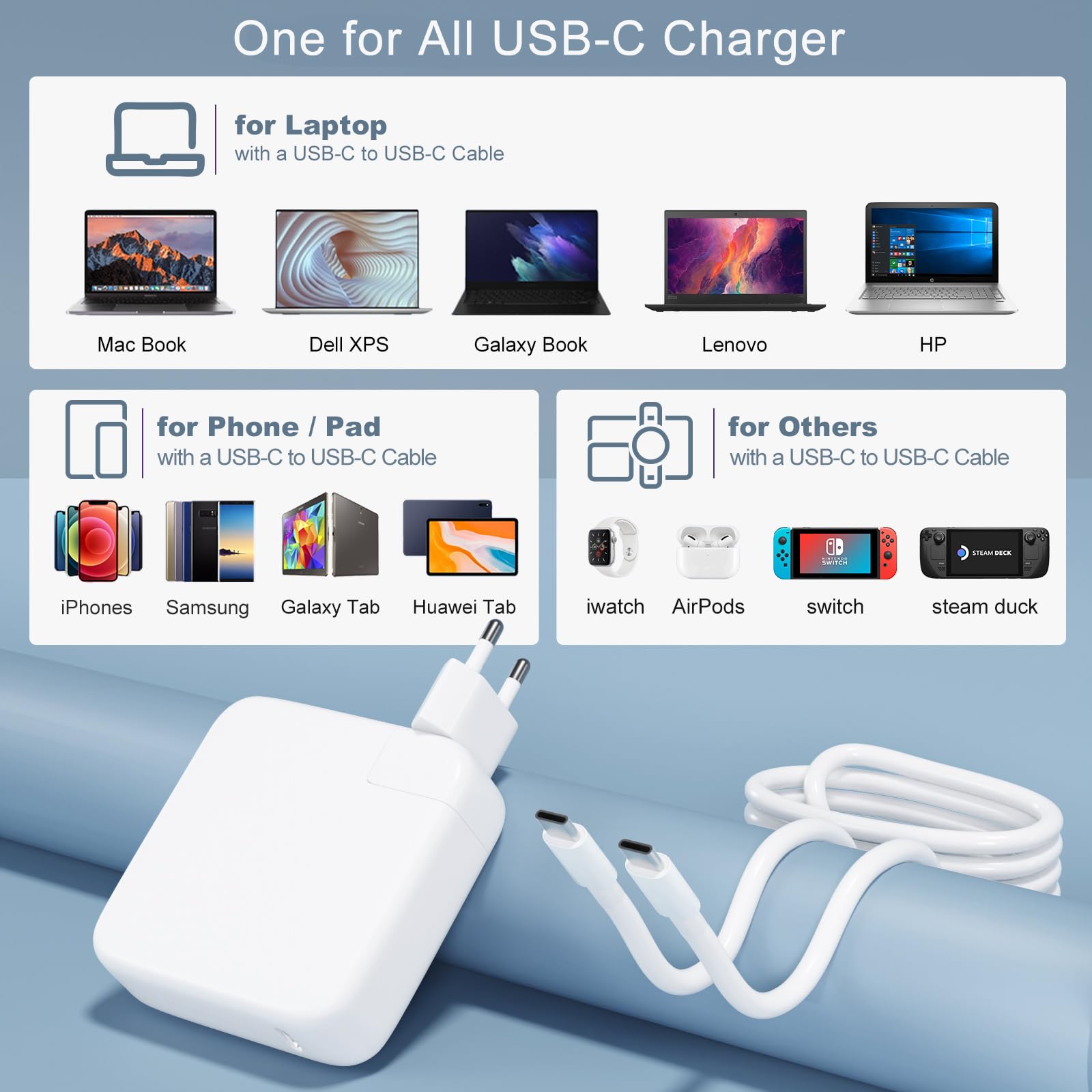 Dieses 96W USB-C Ladegerät ist der starke Ersatz für dein MacBook! Lädt dein MacBook Pro 15 Zoll in nur 1 Stunde 35 Minuten komplett auf. Mit 91% Ladeeffizienz und intelligentem Chip-Schutz vor Überlastung, Kurzschluss und Überhitzung. Inklusive 1,8m USB-C auf C Kabel für volle 96W Ladeleistung. Kompatibel mit MacBook Pro 13/14/15/16 Zoll, MacBook Air, iPad Pro, iPhone 15 Serie und vielen anderen USB-C Geräten. Faltbarer Stecker für platzsparende Aufbewahrung in der Tasche. Unterstützt Power Delivery Protokoll - wählt automatisch die optimale Ladespannung aus. Auch perfekt für Dell XPS, Lenovo Yoga, HP Spectre und andere USB-C Laptops. Datenübertragung mit 480Mbps möglich. Endlich ein universelles Ladegerät das wirklich Power hat!