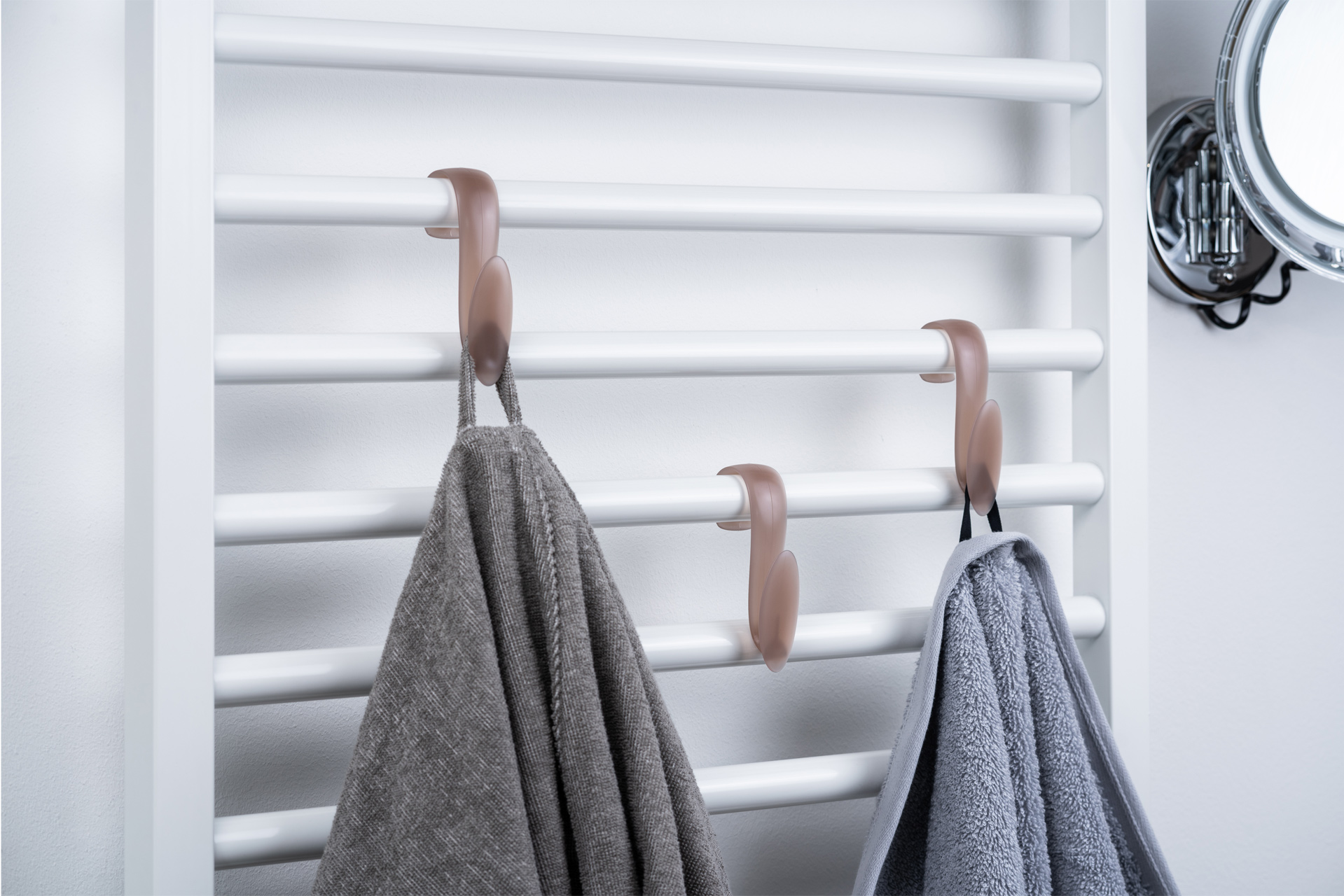 Endlich Ordnung im Bad! Diese 6 WELLGRO Heizkörperhaken sind der Game-Changer für deinen Handtuchheizkörper. Made in Germany - da weißt du, dass die Qualität stimmt! Aus halbtransparentem Soft-Kunststoff (PP) - weich genug, um keine Kratzer zu hinterlassen, aber robust genug für nasse Handtücher. Einfach anhängen und beliebig verschieben - kein Bohren, kein Schrauben, kein Stress! Maße: 5 x 2,5 x 10,3 cm (LxBxH) - passt an alle gängigen Rundheizkörper mit ca. 2,4 cm Durchmesser. Verfügbar in verschiedenen Farben: Grau, Braun, Lila, Weiß oder Türkis - such dir deine Lieblingsfarbe aus! Perfekt für Handtücher, Duschtücher oder Bademäntel - so nutzt du den begrenzten Platz optimal aus. Die Handtücher werden schön warm und du hast alles griffbereit. Auch für die Küche oder Kinderzimmer super geeignet. Deutsche Wertarbeit, die sich im Alltag bewährt. Hol dir dieses praktische 6er-Set und bring Ordnung in dein Bad - du wirst dich fragen, wie du je ohne leben konntest!