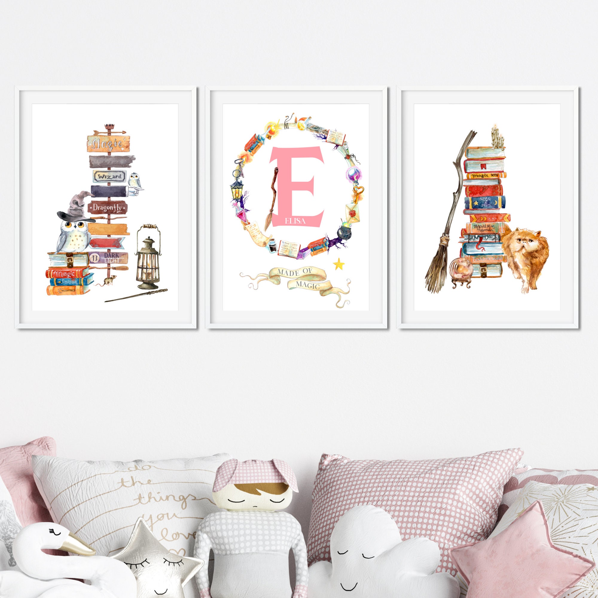 Das 6-teilige Set im Format 27x32cm ist perfekt für die Wand im Kinderzimmer, Spielzimmer oder sogar im Jugendzimmer. Die Aquarell-Optik wirkt zart und geheimnisvoll zugleich - genau richtig für kleine und große Magie-Fans.