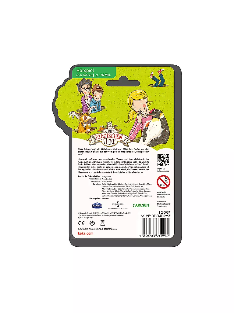 Hörspiel-Spaß ohne Bildschirm für deine Kids! Dieser Kekz-Chip mit 'Die Schule der magischen Tiere - Endlich Ferien' begeistert kleine Zuhörer ab 6 Jahren. Einfach an den Kekz-Hörer klicken und schon geht's los - ohne Handy, ohne Kabel, ohne Stress. 74 Minuten spannendes Abenteuer mit Rabbat und Ida. Der Hörer hat eine kindersichere Lautstärke-Begrenzung auf 85 dB und läuft bis zu 10 Stunden. Perfekt für unterwegs im Auto, zu Hause oder bei Oma. Kein Internet nötig, kein Download - einfach loshören. Fördert die Fantasie ohne Bildschirmzeit. Mit vielen weiteren Geschichten von Benjamin Blümchen, Bibi & Tina und mehr erweiterbar. Der ideale Begleiter für kleine Hörspiel-Fans!