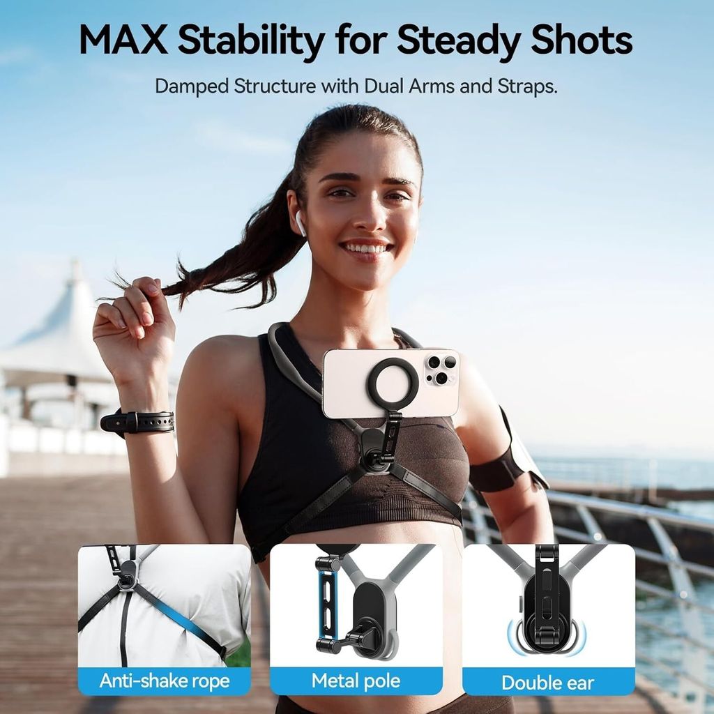Perfekt für alle Content-Creator und Vlogger! Diese geniale Nackenhalterung hält dein Smartphone oder deine Action-Kamera sicher vor deiner Brust - ideal für Hands-free Aufnahmen aus der Ich-Perspektive! Mit 16 starken Aluminium-Magneten sitzt dein Gerät bombenfest, aber dank Quick-Release Funktion löst es sich mit einem Klick. Die flexible Silikon-Halsband ist super bequem und passt sich jeder Körperform an. Dreh dein Device um 360° für horizontale oder vertikale Aufnahmen - perfekt für Radtouren, Workouts, Kochen oder Reise-Vlogs! Kompatibel mit iPhone 12-16, Samsung Galaxy, Google Pixel und den meisten Action-Kameras. Das innere Edelstahl-Gestell verhindert Verformungen und garantiert lange Haltbarkeit. Endlich freie Hände beim Filmen und trotzdem professionelle Ergebnisse! Ob für Sport, Reisen oder tägliche Vlogs - mit dieser Halterung wird jeder zum Pro!