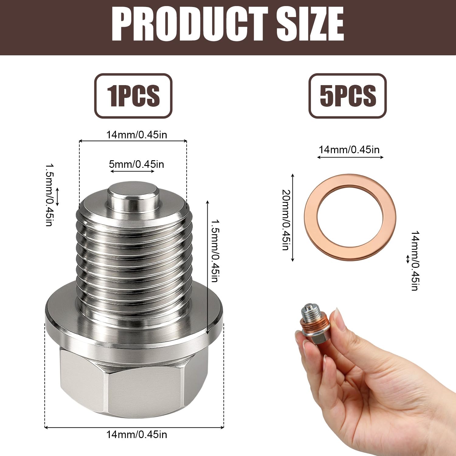 Aisikoo Magnetische Ölablassschraube M14x1.5 - Mit 5 Kupferdichtungen
