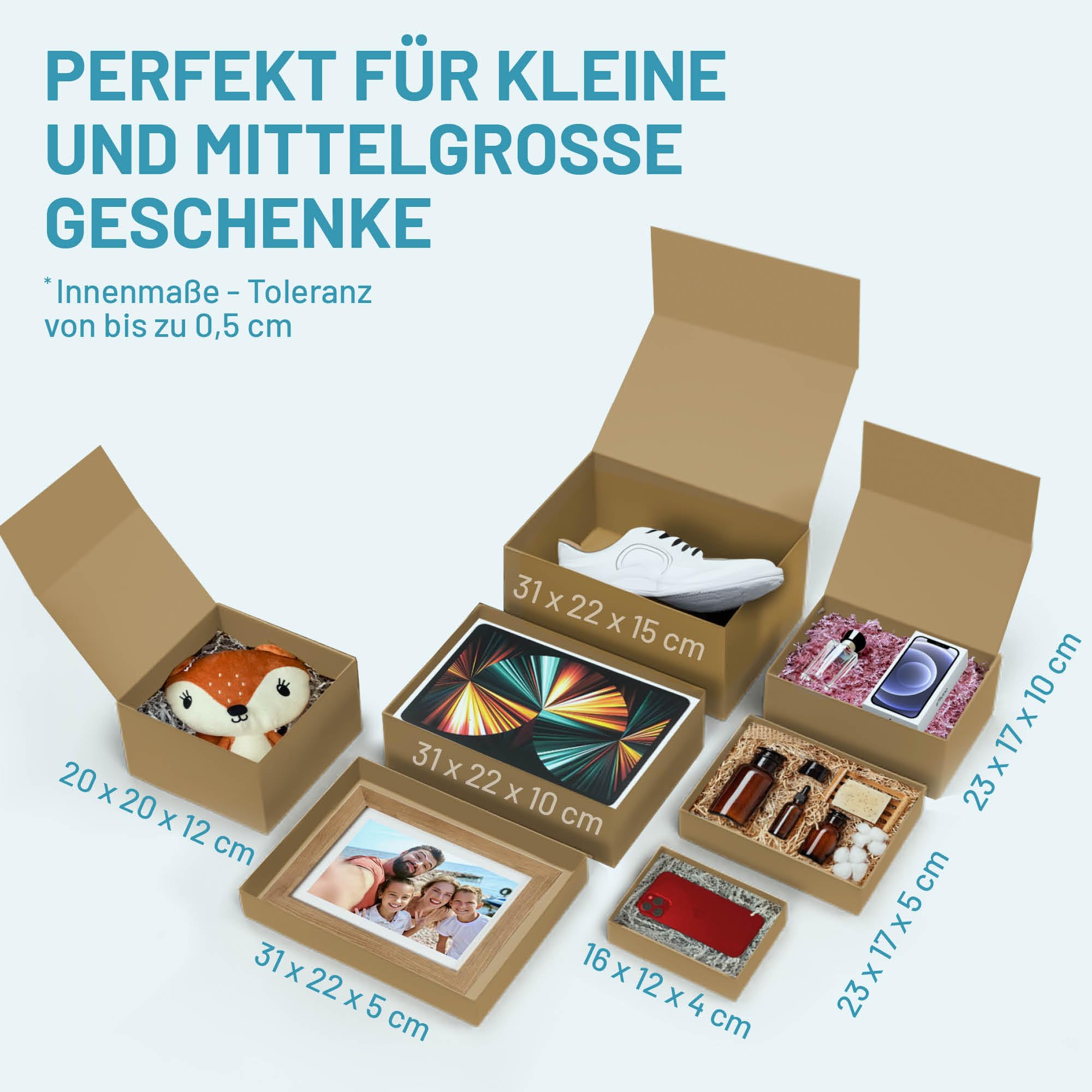 Oh man, Geschenke einpacken kann echt nerven - Geschenkpapier zurechtschneiden, Klebeband suchen, und dann sieht's trotzdem nicht perfekt aus! 😅 Aber mit dieser weißen Geschenkbox machst du alles richtig. Die ist so elegant und praktisch zugleich!\n\nWas ich super finde: Der magnetische Verschluss! Der hält richtig gut, aber du kriegst die Box trotzdem easy auf. Und das beste? Sie kommt flach an und lässt sich ganz einfach zusammenfalten. Perfekt für alle, die nicht viel Stauraum haben.\n\nTechnische Details:\n• Maße: 28 x 20 x 9 cm\n• Material: Hochwertiger Karton\n• Farbe: Reinweiß\n• Verschluss: Magnetisch\n• Mit integriertem Band\n• Umweltfreundlich und recycelbar\n\nEgal ob Geburtstag, Hochzeit, Weihnachten oder einfach so - für jeden Anlass ist diese Box genau das Richtige. Sie schützt dein Geschenk und sieht dabei noch mega stylisch aus. Das Band gibt dem ganzen den letzten Schliff, ohne dass du irgendwas basteln musst.\n\nUnd hey, die Box ist so schön, dass der Beschenkte sie bestimmt wieder verwenden wird. Nachhaltig und praktisch! 🌱 Ob für Schmuck, Elektronik oder persönliche Geschenke - in dieser Box kommt alles perfekt zur Geltung.\n\nEinfach Geschenk rein, Deckel zu - und du hast eine professionelle Verpackung, die garantiert beeindruckt! 🎁