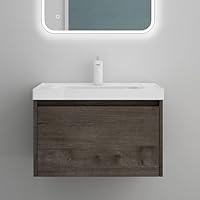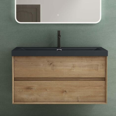Mai & Mai Badmöbelset Eiche Greige 100cm - Waschbeckenunterschrank Mit Mineralgussbecken