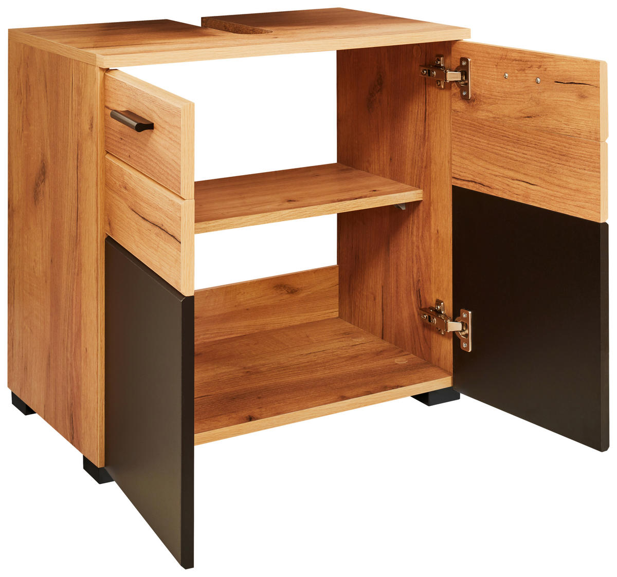 Makastle Waschbeckenunterschrank Braun Eiche - 60x30x60cm Mit 2 Türen & Stahlrahmen