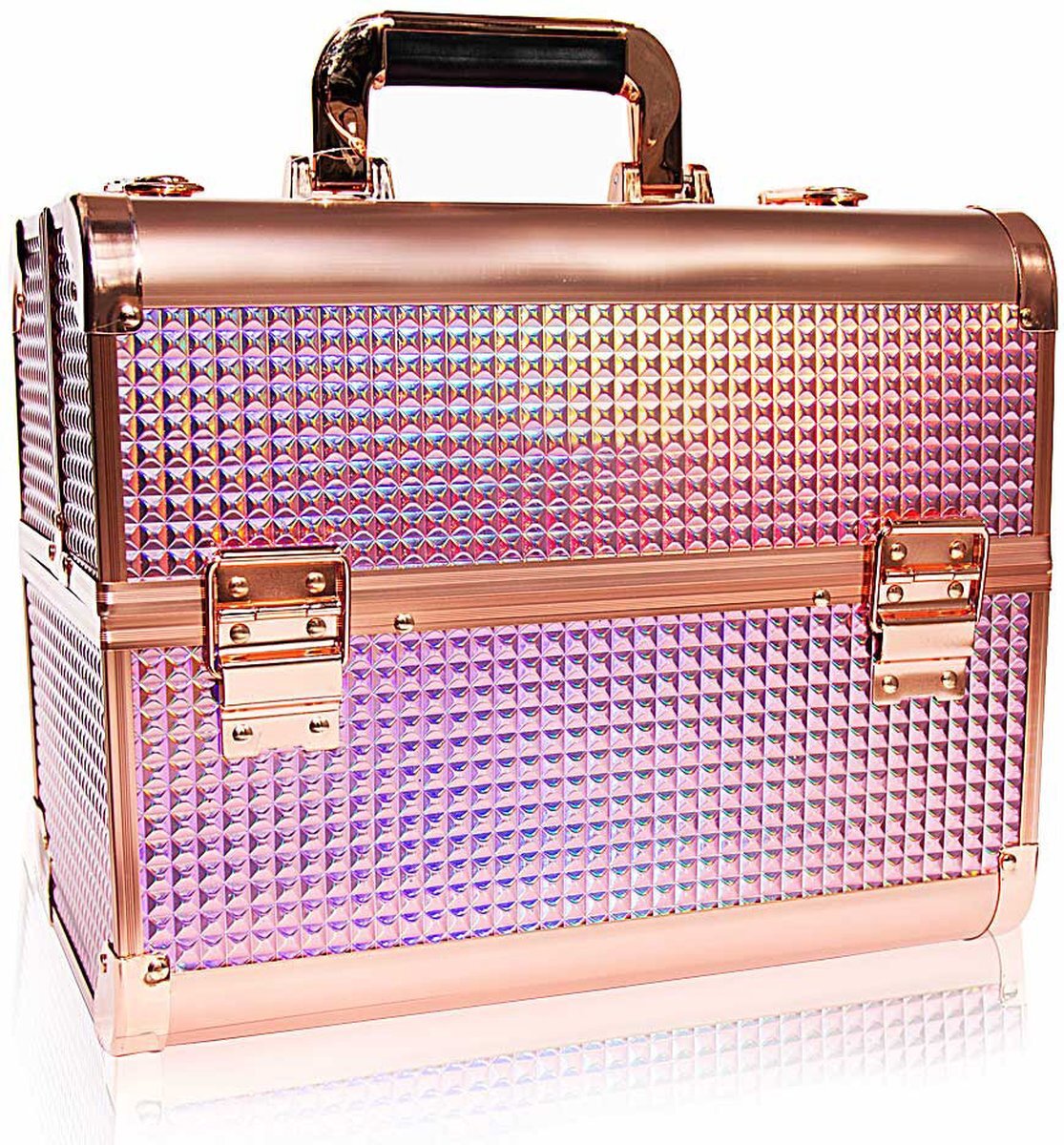 Mit den kompakten Maßen von 18x15x15cm passt der Koffer perfekt in jede Reisetasche. Ob zu Hause oder unterwegs - deine Kosmetik ist immer ordentlich und griffbereit. Ein echter Hingucker für jede Beauty-Loverin!