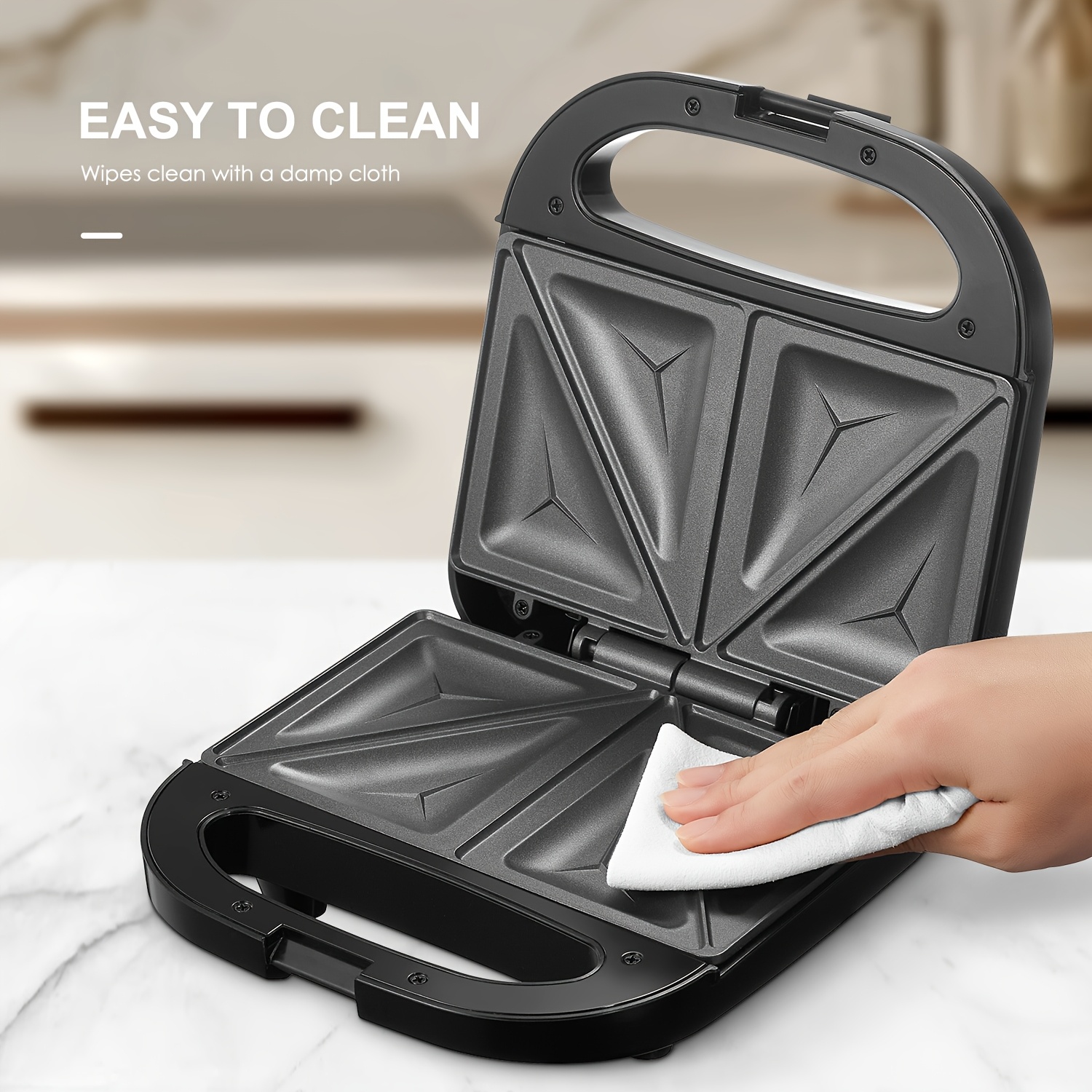 Drei Geräte in einem! Dieser praktische Sandwichmaker kann nicht nur Sandwiches, sondern auch Waffeln und Donuts machen. Mit 750 Watt Leistung - alles ist schnell fertig. Wechselbare Platten - einfach austauschen je nachdem was du machen willst. Antihaft-Beschichtung - nichts klebt an. Nur 5,2 Pfund leicht und kompakt - perfekt für kleine Küchen. Sicherer Griff und Anti-Rutsch-Füße - absolut sicher in der Anwendung. Kontrollleuchten zeigen an wann es heiß ist. Perfekt für Frühstück, Snacks oder wenn Besuch kommt. Einfach ausprobieren und leckere Kreationen genießen!