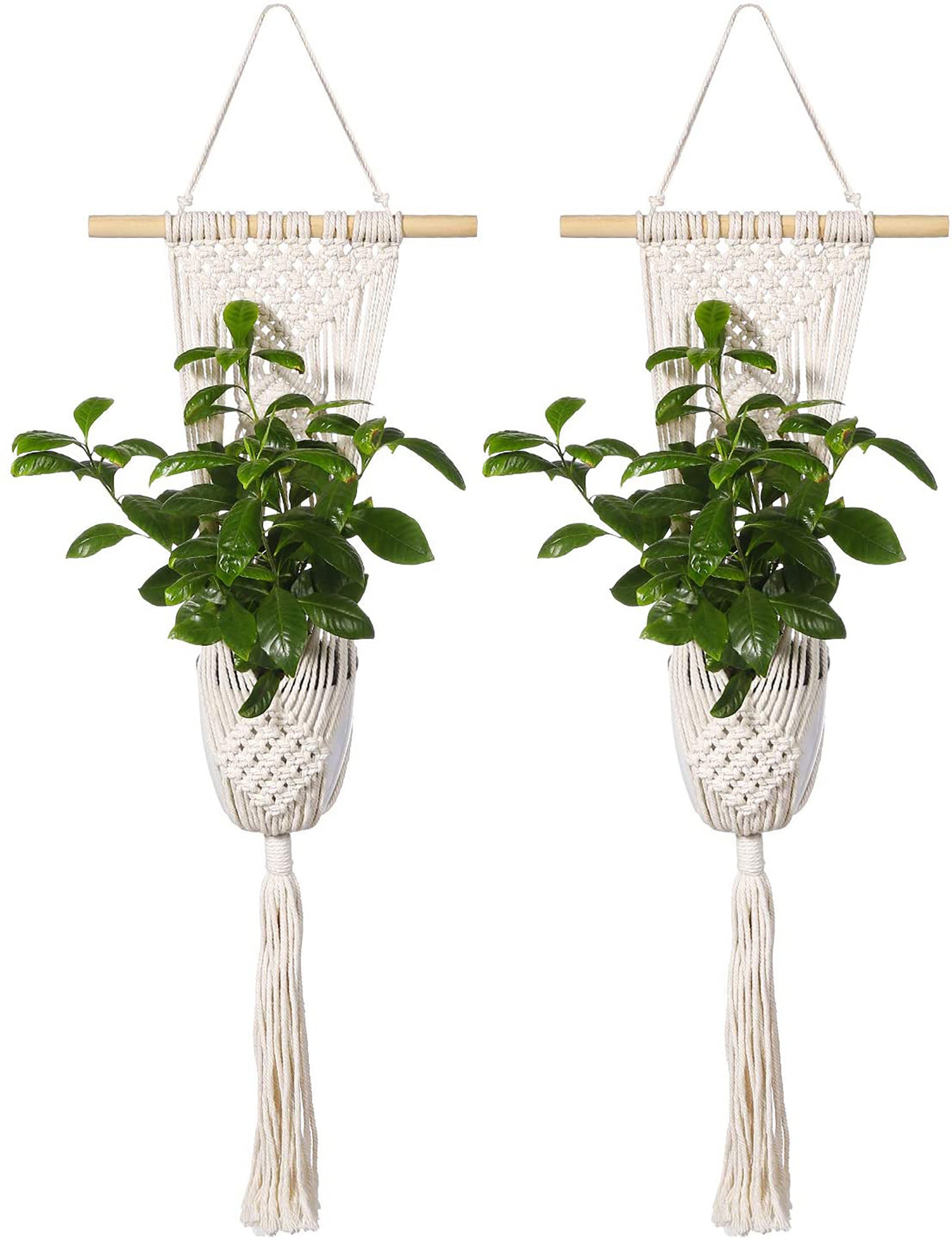 BESTonZON Makramee Pflanzenhalter 2er Set - Hängende Blumenampel Mit Quasten