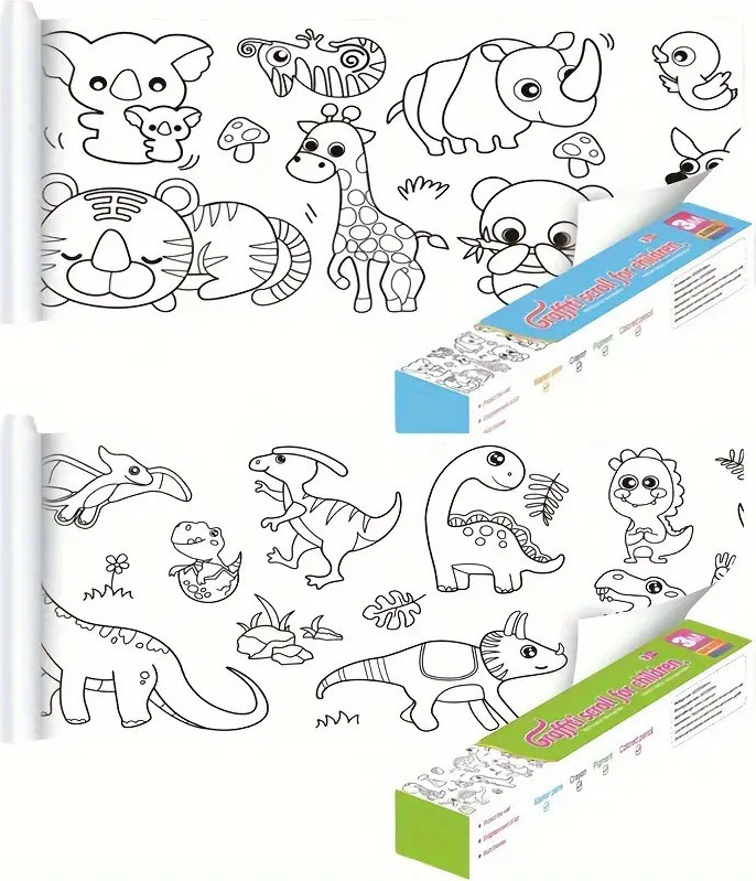 Malspaß ohne Grenzen! Diese Zeichnungsrolle für Kinder bietet 3 Meter Malfläche mit süßen Dinosaurier-Motiven. Das besondere: rückseitiger Kleber, der keine Spuren hinterlässt! Einfach an Wand, Möbel oder Boden kleben - und nach dem Malen rückstandslos ablösen. Perfekt für Buntstifte, Filzstifte und Wasserfarben. Fördert Hand-Auge-Koordination, Kreativität und Vorstellungskraft deines Kindes. Die wiederholten Motive auf 150cm Abschnitten begeistern kleine Künstler. Umweltfreundliches Papier mit klaren Linien für einfaches Ausmalen. Einfach an der Perforation abzureißen. Ideal als Geburtstagsgeschenk, für Weihnachten oder als Belohnung. Ob im Kinderzimmer, Wohnzimmer oder Kindergarten - überall einsetzbar. Mach deinem Kind eine Freude mit diesem kreativen Malvergnügen! Endlich malen, ohne sich um Flecken zu sorgen. Hol dir jetzt die praktische Malrolle für stundenlangen Maltrieb!