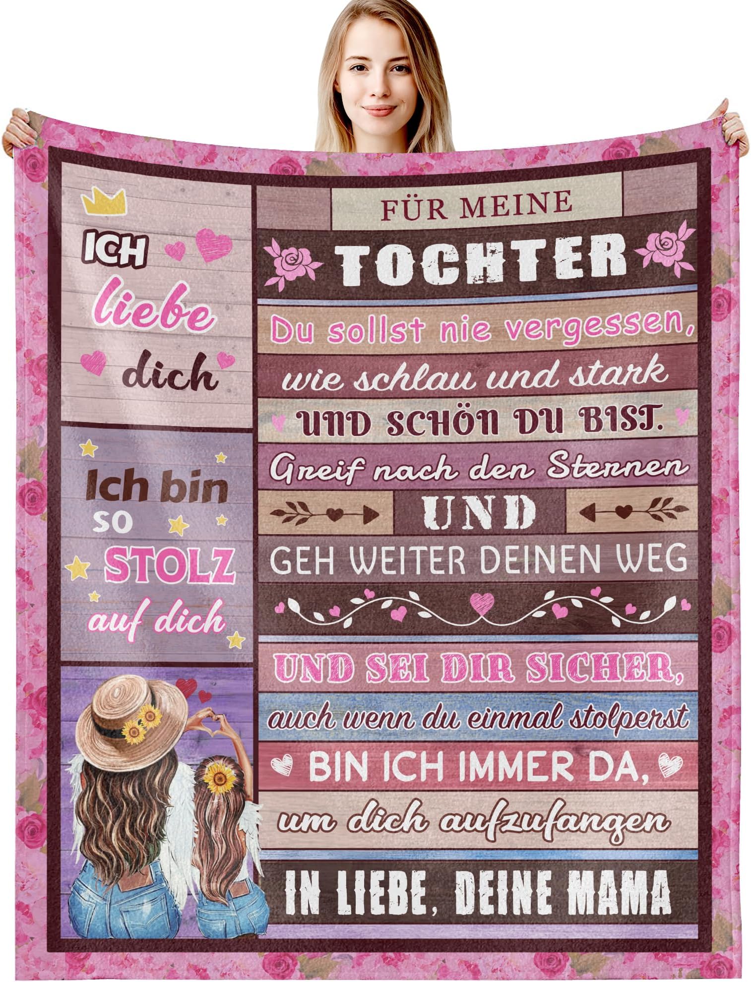 Suchst du ein richtig herzliches Geschenk für deine Mama? Diese kuschelweiche Decke ist genau das Richtige! Sie ist nicht nur super gemütlich, sondern hat auch eine persönliche Note.\n\nGröße: 152 x 127 cm - perfekt zum Einkuscheln auf dem Sofa oder im Bett. Hergestellt aus hochwertiger Microfaser - mega weich und anschmiegsam. Deine Mama wird sich freuen wie ein Kind!\n\nPerfekt für:\n• Geburtstage\n• Muttertag\n• Weihnachten\n• Ostern\n• Oder einfach so als Überraschung\n\nDie Decke ist komplett pflegeleicht - einfach in die Waschmaschine stecken und bei niedriger Temperatur waschen. Trocknet super schnell und wird nach dem Waschen sogar noch flauschiger!\n\nKeine Bleichmittel verwenden, dann hält sie ewig. Beim Auspacken vielleicht etwas geknittert, aber das gibt sich nach dem ersten Waschen.\n\nEin Geschenk, das von Herzen kommt und wirklich praktisch ist. Deine Mama wird sich jeden Abend daran erinnern, wie lieb du an sie denkst. Einfach auspacken, umarmen und strahlen lassen!