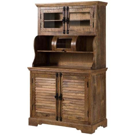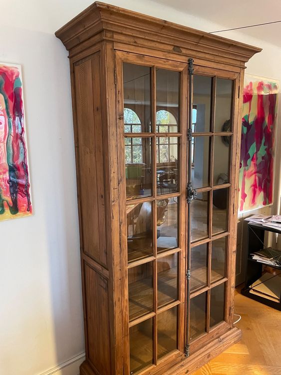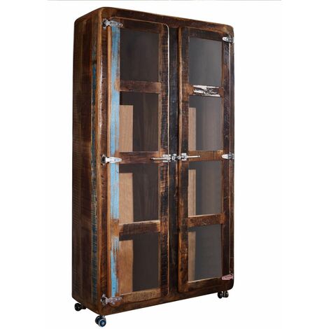 Vitrine Massivholz Mangoholz 65x45x190cm - Landhaus Stil Mit Glasfront