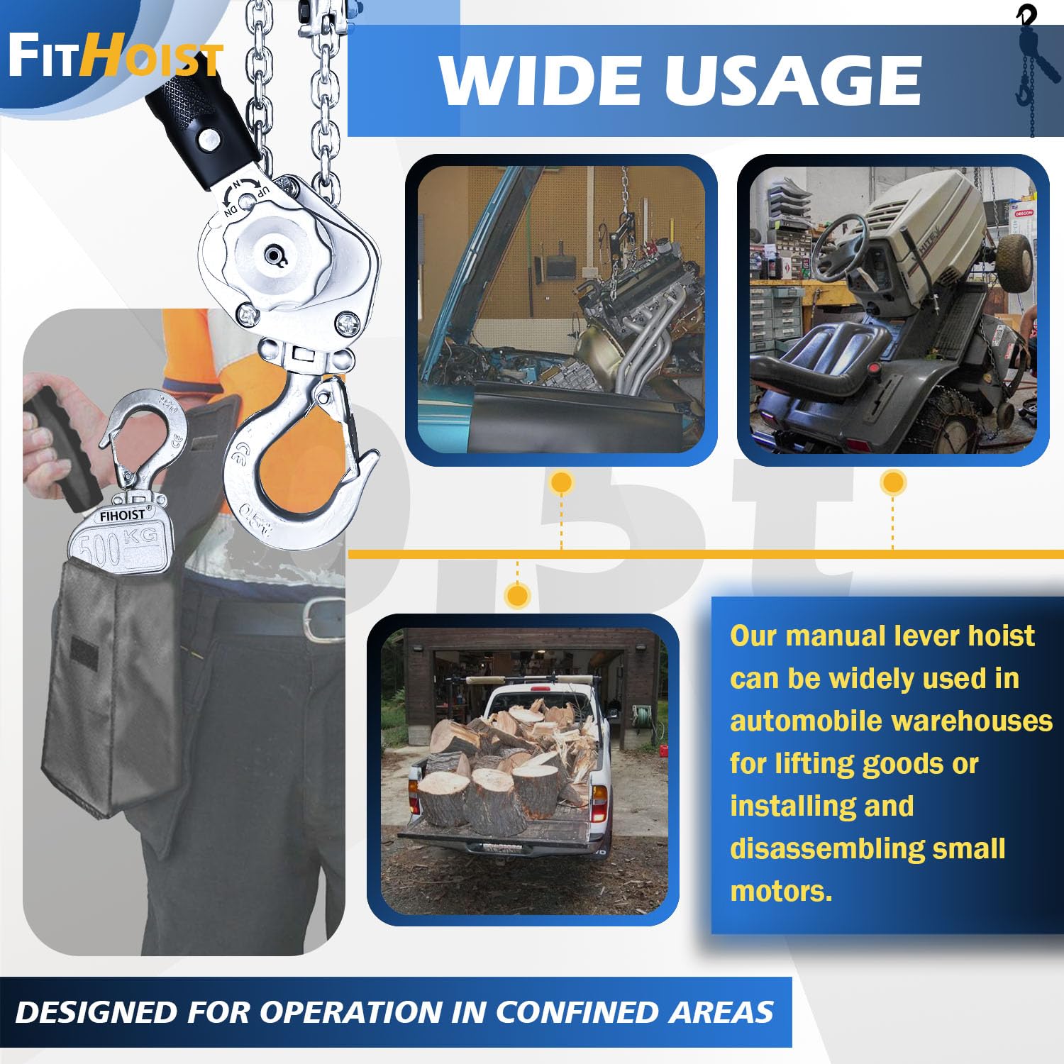 FITHOIST Mini-Kettenzug 250kg - Manueller Hebezug 1,5m Für Garage & Werkstatt