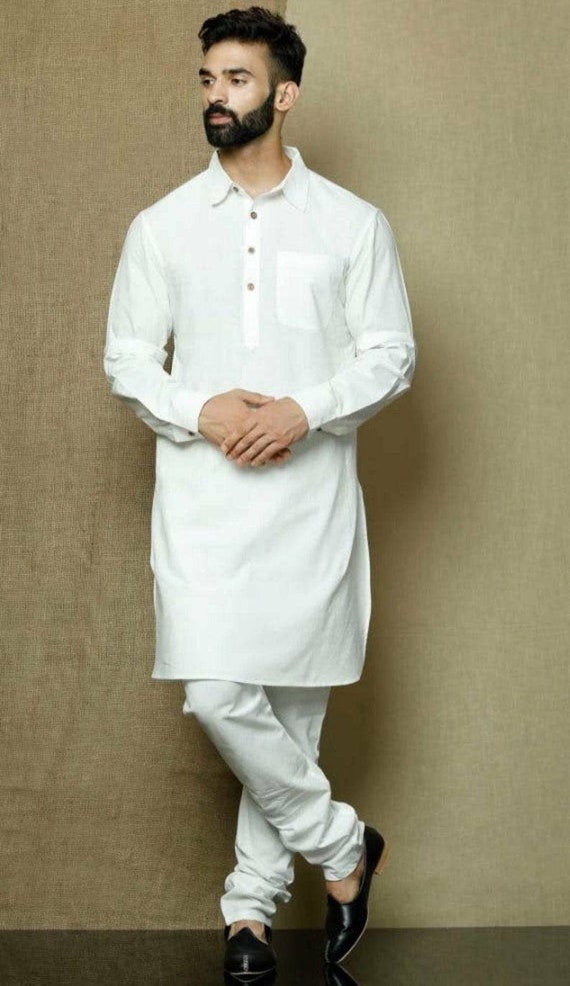 Maple Clothing Indische Herren-Kurta - Weiß, Baumwolle, Für Hochzeiten & Feste