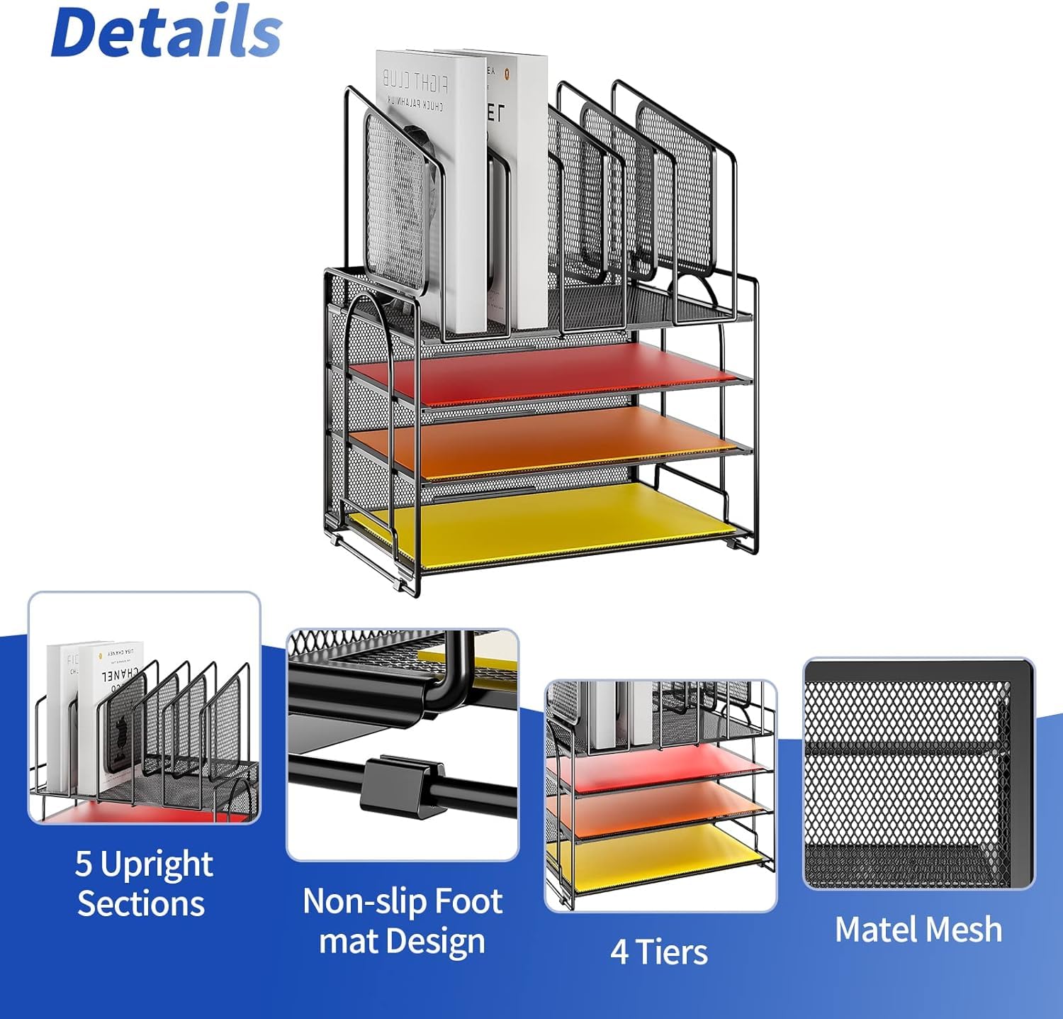 Endlich Ordnung auf dem Schreibtisch! Dieser coole 4-stufige Organizer aus Metall ist perfekt für alle, die ihre Papiere, Dokumente und Büro-Utensilien sortieren wollen. Mit praktischem Griff kannst du ihn einfach verschieben und überall hinstellen. Die obere Ablage ist super für Stifte, Marker oder kleine Deko-Artikel. Aus robustem Metall mit schicker Pulverbeschichtung - hält ewig und sieht dabei noch stylisch aus. Maße: 32x23x19cm - passt auf jeden Schreibtisch. Einfach in 10 Minuten zusammengebaut und schon wird dein Arbeitsplatz zum Vorzeige-Büro!