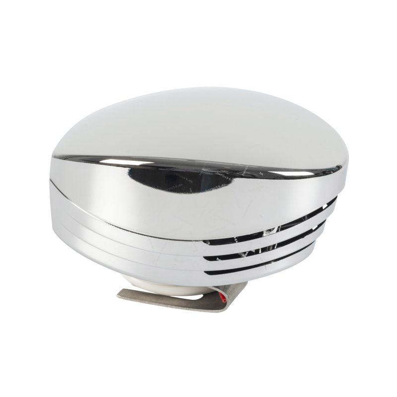 Der Trichter ist aus hochglanzverchromtem Messing - sieht nicht nur super aus, sondern rostet auch nicht. Die Membrane aus witterungsbeständigem Kunststoff hält jedes Wetter aus. Mit 210 Hz Frequenz klingt das Horn einfach perfekt.