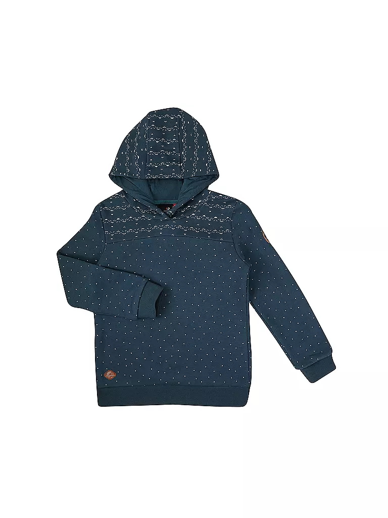 Ahoy, kleine Matrosen! Der Gitka Marina Hoodie von ragwear bringt maritimen Style in den Alltag. Mit dem süßen Anker-Allover-Print und der kuschelweichen Kapuze mit gestreiftem Futter wird dieser Pulli zum Lieblingsteil im Kleiderschrank. Aus weicher Baumwolle-Polyester-Mischung - super angenehm auf der Haut und perfekt für Schule, Spielplatz oder gemütliche Tage zuhause. Die seitlichen Taschen bieten Platz für kleine Schätze und die elastischen Bündchen an Ärmeln und Saum halten schön warm. Besonders cool: Die versteckten Motivations-Botschaften im Inneren sorgen für ein Lächeln beim Anziehen! Vegan produziert und damit auch noch nachhaltig - da freuen sich Mama und Papa mit. Passt super zu Jeans, Leggings oder Röcken und ist damit der ideale Begleiter für alle Abenteuer. Einfach anziehen und sich wohlfühlen - so macht Kindermode Spaß!