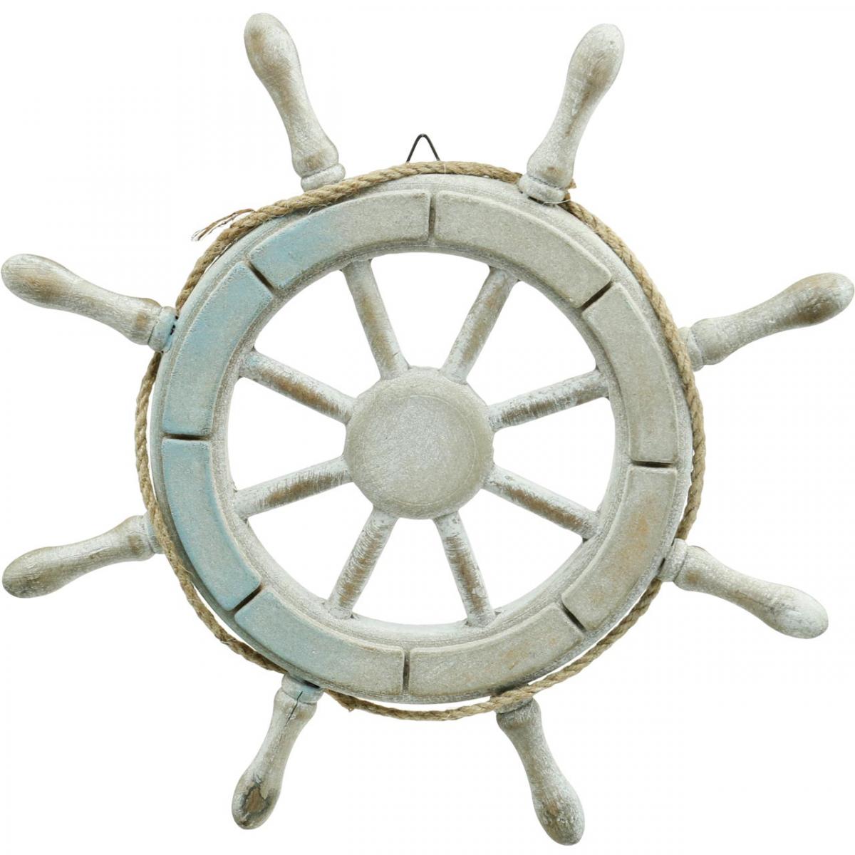Nautisches Holz-Steuerrad - Maritime Wanddekoration In Hellblau