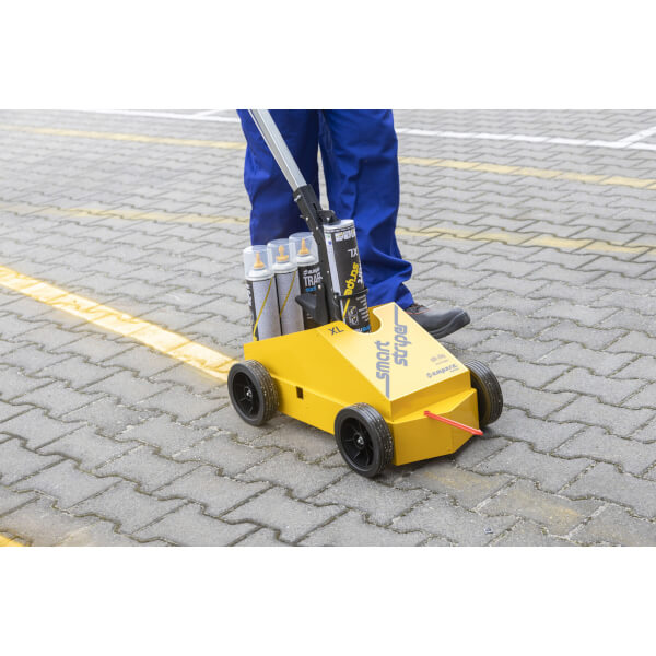Schluss mit krummen Linien und Rückenschmerzen! Dieser Bodenklebeband-Applikator macht Markierungsarbeiten zum Kinderspiel. Einfach die Klebebandrolle einlegen (bis 15cm Breite, 7,5cm Innendurchmesser) und schon ziehst du perfekt gerade Linien über den Boden. Der robuste Metallrahmen hält auch bei täglichem Einsatz stand. Das aufrechte Design bedeutet: Kein Bücken mehr! Bequem im Stehen arbeiten, ohne dass der Rücken weh tut. Integriertes Lineal für exakte Abstände - ob Parkplätze, Lagerwege oder Sicherheitszonen. Für Einzel- oder Doppelrollen, einstellbarer Abstand für verschiedene Linienbreiten. Perfekt für Werkstätten, Lagerhallen, Sportplätze oder Events. Spart Zeit und Nerven - professionelle Ergebnisse ohne Profi-Kenntnisse. Einfach schieben und das Band rollt sich von alleine ab. Ein Must-Have für jeden, der regelmäßig Markierungen anbringt!