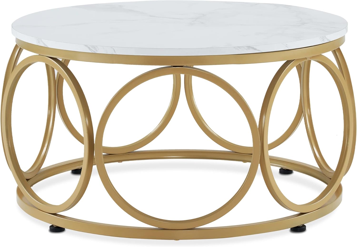 Barberpub Couchtisch Rund - Marmor Optik Weiß Gold Für Wohnzimmer