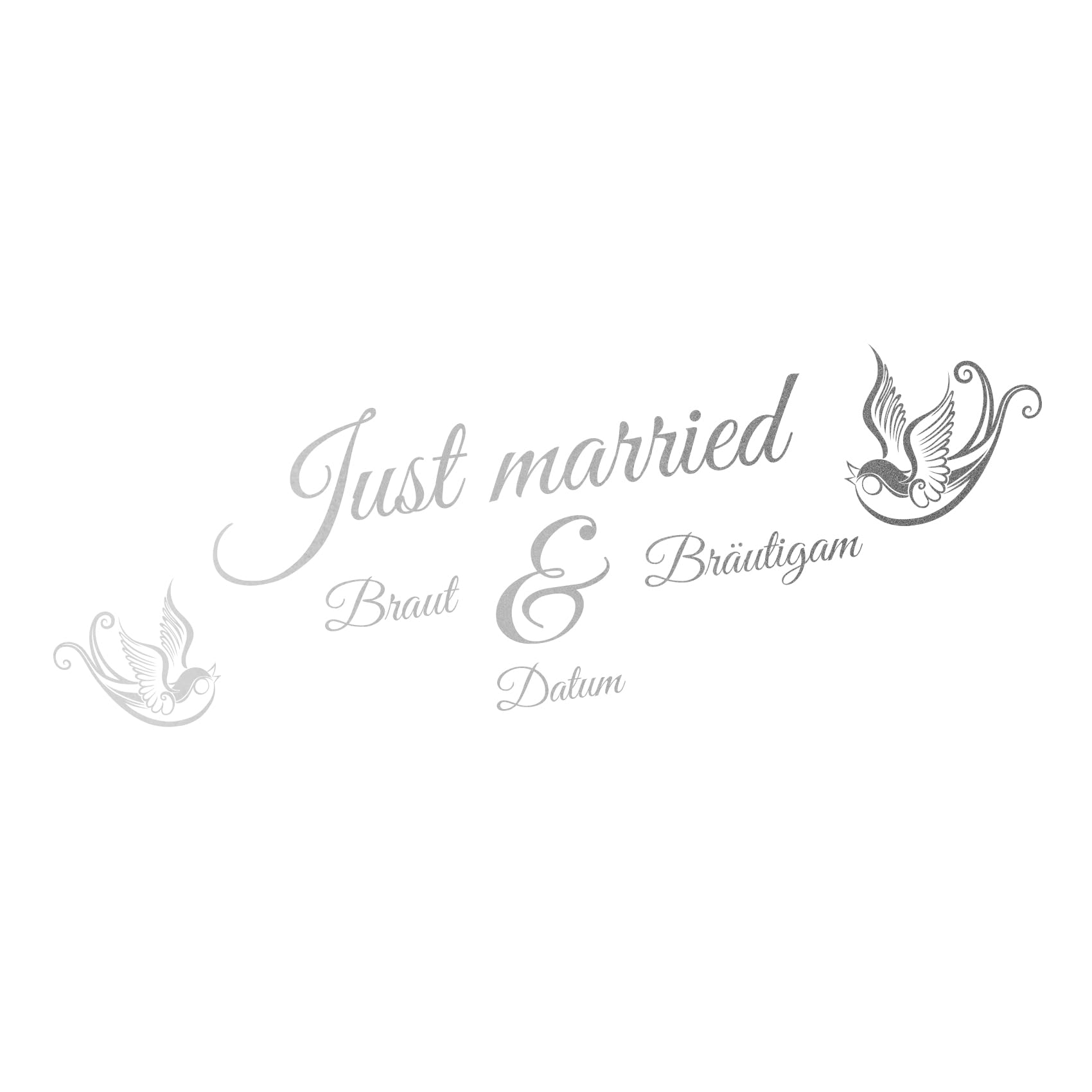 Mach deine Hochzeit unvergesslich! Diese Just Married Aufkleber verwandeln jedes Auto in ein romantisches Hochzeitsauto. Aus hochwertigem Vinyl das sich rückstandslos entfernen lässt - keine Klebereste auf der Lackierung. Das süße Design mit Herzen und Blättern bringt sofort Hochzeitsstimmung. Einfach auf die Heckscheibe oder Seitenfenster kleben - hält bombenfest während der Fahrt. Wasserdicht und witterungsbeständig - egal ob Sonne oder Regen. Perfekt für die Abfahrt von der Kirche oder für die Flitterwochen-Reise. Auch super als Deko für die Hotelzimmertür oder Junggesellenabschied. Einfach aufkleben und die Liebe feiern!