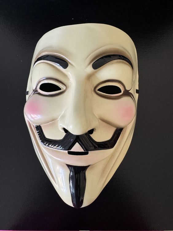 Hey du! Bist du bereit, wie V aus V wie Vendetta auszusehen? Diese ikonische Maske ist genau das Richtige für dein nächstes Cosplay-Abenteuer!\n\nDiese detailgetreue Nachbildung der berühmten Guy Fawkes Maske wird nicht nur von Anonymous Hackern getragen, sondern ist auch aus dem Kultfilm bestens bekannt. Mit ihren 20x16 cm passt sie perfekt auf die meisten Gesichter - ob Erwachsene oder Kinder.\n\nAus robustem Kunststoff gefertigt, wiegt sie nur 45 Gramm und liegt damit angenehm leicht im Gesicht. Die Innenseite ist mit weichem Schaumstoff gepolstert, sodass sie auch mit Brille bequem zu tragen ist. Die glatten Kanten schneiden nicht ins Gesicht - super wichtig bei langem Tragen!\n\nPerfekt für:\n• Halloween-Partys\n• Cosplay-Events\n• Karneval und Fasching\n• Maskenbälle\n• Film- und Serien-Marathons\n\nDie lebendigen Farben und die authentische Nachbildung machen diese Maske zum echten Hingucker. Du wirst sicher alle Blicke auf dich ziehen!\n\nUnd das Beste: Sie schützt deine Privatsphäre - sowohl online als auch in der echten Welt. Ob du nun eine Mystery-Party besuchst oder einfach nur anonym bleiben willst...\n\nMit dem beigefügten elastischen Band sitzt die Maske sicher und verrutscht nicht. Einfach aufsetzen und schon bist du bereit für dein nächstes Abenteuer!\n\nAchtung: Wir sind von der Qualität überzeugt! Bei Fragen oder Problemen melde dich einfach bei unserem Kundenservice - wir helfen dir gerne weiter.\n\nHol dir dieses Stück Filmgeschichte und werde zum unvergesslichen Charakter auf deiner nächsten Party!