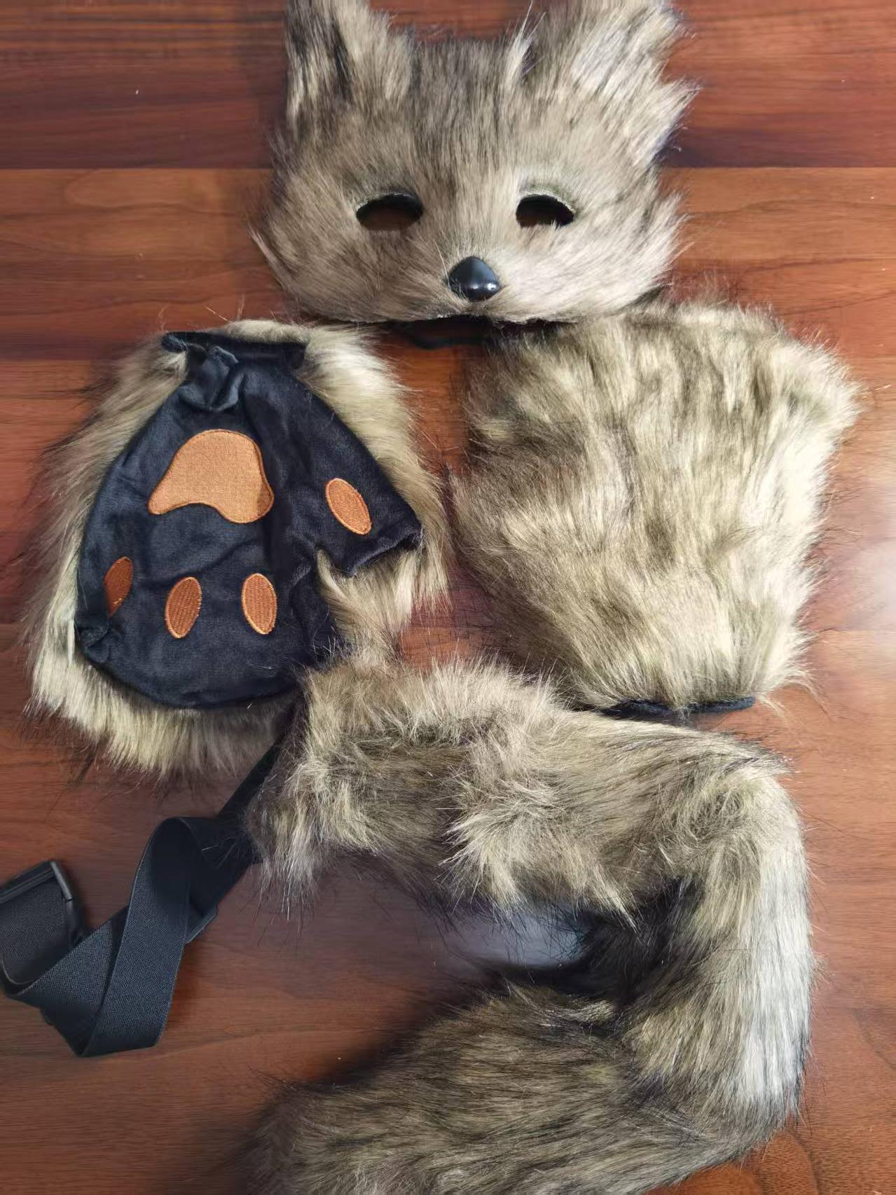 Fuchs Plüsch Maske Set - Therian Maske Mit Schwanz & Handschuhe Für Cosplay