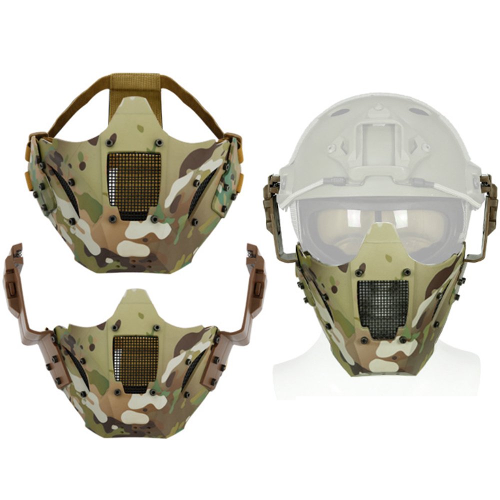 Volle Action, voller Schutz! Diese taktische Half-Face-Maske ist dein perfekter Begleiter für Paintball, Airsoft und andere Action-Spiele. Das Stahl-Mesh-Gesichtsteil hält sogar 700 FPS stand und schützt dich zuverlässig vor Treffern. Gleichzeitig bietet es eine gute Sicht und ausreichend Belüftung. Du kannst die Maske entweder direkt mit dem verstellbaren Gummiband tragen oder sie mit den mitgelieferten Schienenverbindungskomponenten an deinem FAST-Helm befestigen - total flexibel also! Das umweltfreundliche TPE-Material ist ungiftig und geruchlos, während die Kohlenstoffstahl-Beschichtung für hohe Festigkeit sorgt. Das verdickte Polster innen lässt sich zur Reinigung oder zum Austausch einfach entfernen. Mit den Maßen 21x15,5cm passt sie den meisten Gesichtern und wiegt nur 200g - angenehm leicht also. So kannst du dich voll aufs Spiel konzentrieren, ohne dich durch die Ausrüstung eingeschränkt zu fühlen!