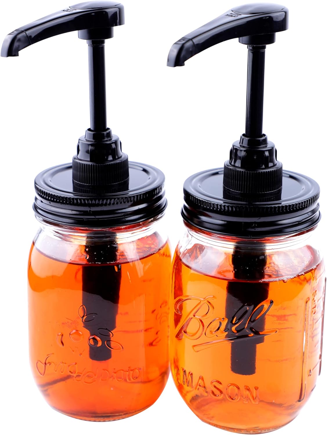 Mason Jar Spender Set 2-tlg | Sirup & Soßen Pumpflasche | 473ml Luftdicht