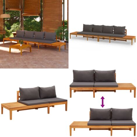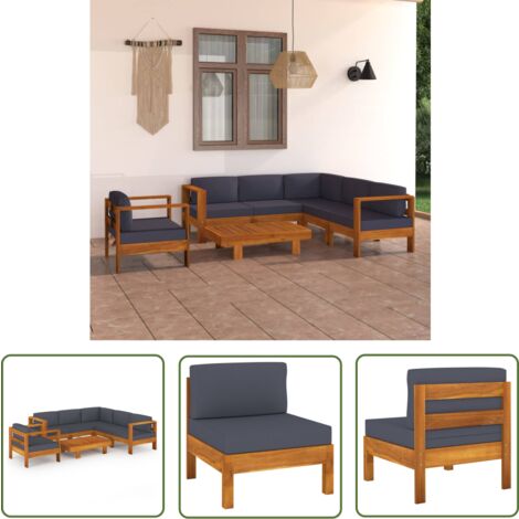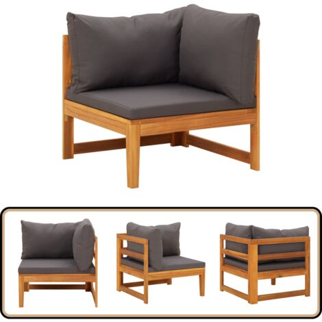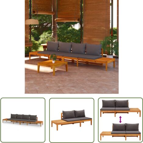 VidaXL Akazienholz Garten Sofa - Massiv, Mit Grauen Kissen, Wetterbeständig