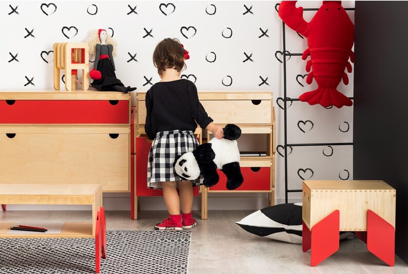Dieses Montessori Regal bringt Ordnung ins Kinderzimmer! Aus robustem Massivholz gefertigt, mit 4 praktischen Ablagen für Spielzeug, Bücher und Lernmaterialien. Maße: 75x40x82 cm - perfekt für kleine Kinderhände. Nach Montessori-Prinzipien designed, damit dein Kind selbstständig an alles rankommt. So lernen Kinder spielerisch, Ordnung zu halten. Das Regal ist super stabil und hält auch wildem Spielstand. Perfekt als Spielzeugregal, Bücherregal oder einfach als Ablage. Sieht nicht nur gut aus, sondern ist auch mega praktisch. Dein Kind hat alles im Blick und du hast endlich mehr Ordnung im Zimmer!