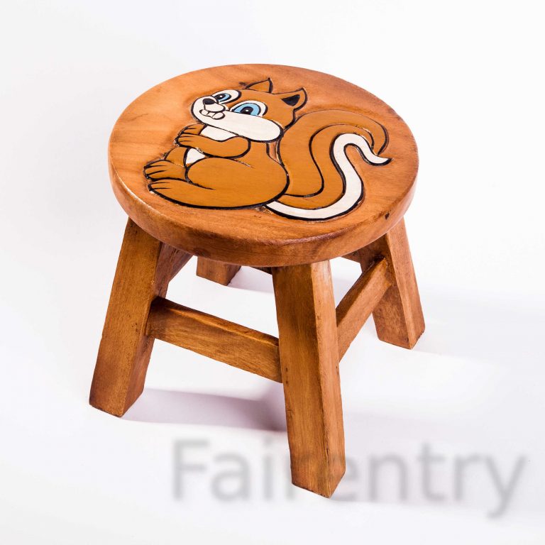FairEntry Kinderhocker Aus Massivholz - Mit Tiermotiv Katze/Tiger