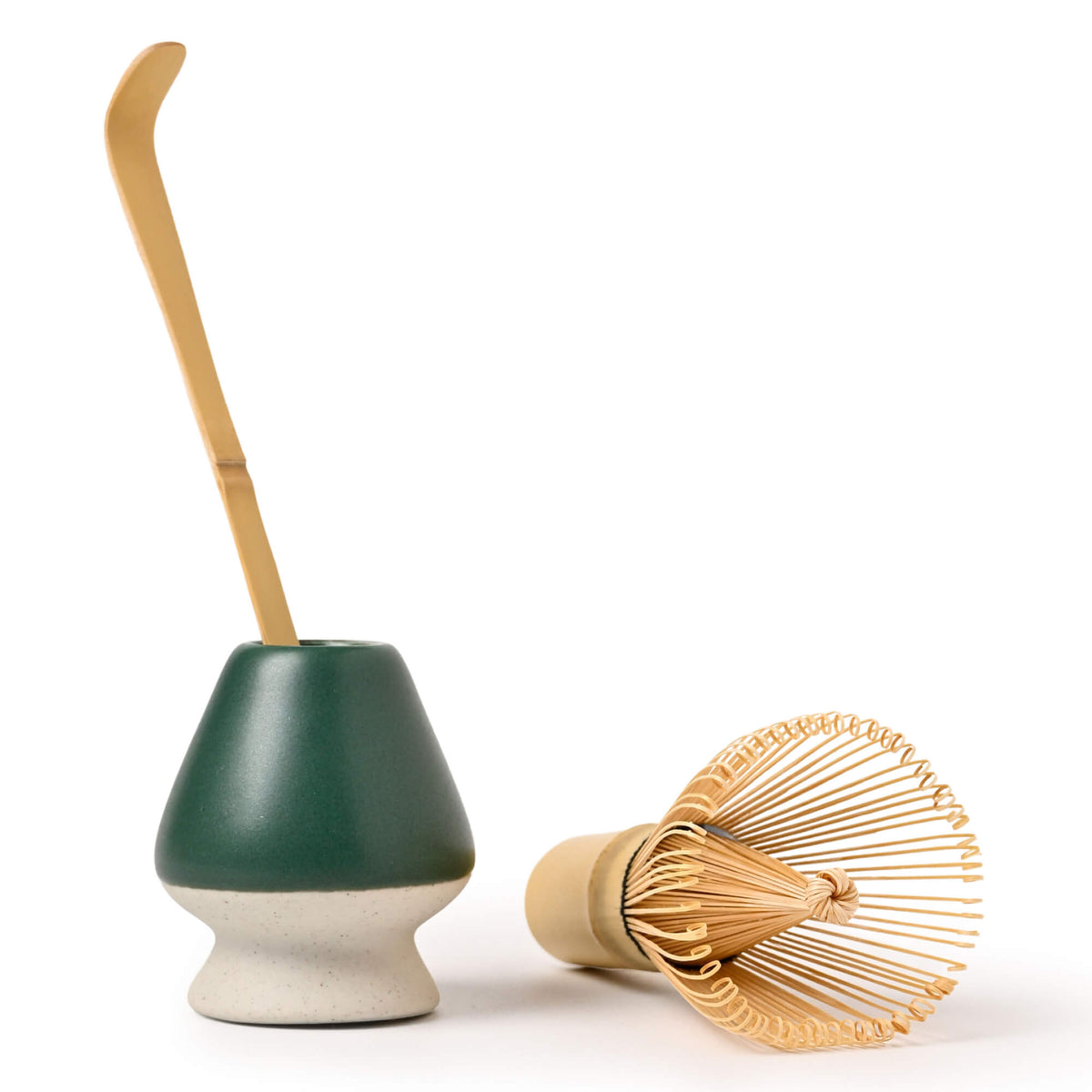 Entdecke die jahrhundertealte Tradition der Matcha-Zubereitung! Dieses komplett 6-teilige Set enthält alles, was du für die perfekte Matcha-Tee-Zeremonie brauchst: einen handgefertigten Bambusbesen (Chasen), eine schöne Keramikschale mit Ausgießer (Chawan), einen Besenhalter, Matcha-Löffel (Chashaku) und ein Filtersieb. Der Bambusbesen mit seinen 80 feinen Borsten erzeugt einen wunderbar cremigen, klumpenfreien Schaum - genau wie in Japan! Die frische grüne Keramikschale sorgt für die richtige Stimmung und der glatte Innenboden macht das Aufschlagen zum Kinderspiel. Einfach das Matcha-Pulver sieben, mit heißem Wasser übergießen und mit dem Besen schaumig schlagen. Nach Gebrauch einfach mit kaltem Wasser abspülen und trocknen lassen. Ein wunderbares Geschenk für Teeliebhaber oder für dich selbst - um die Kunst des Matcha zu meistern!