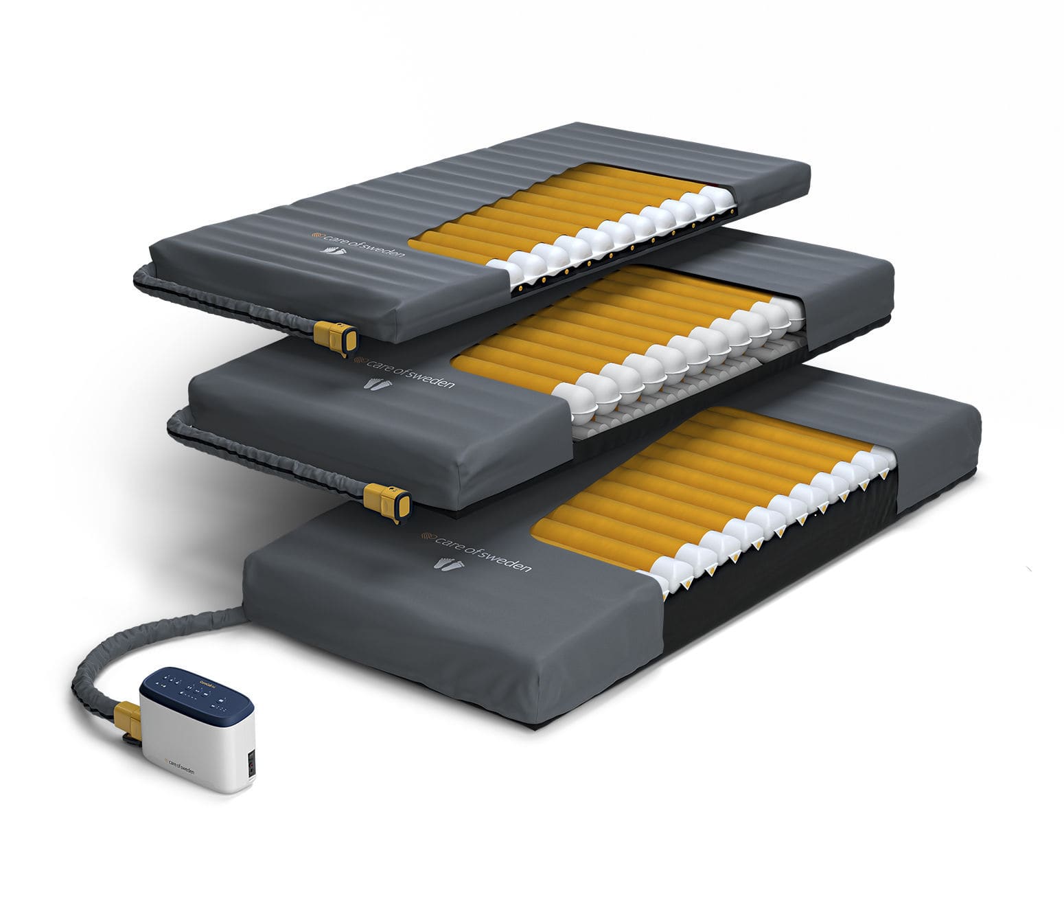 Im Lieferumfang sind gleich zwei Auflagen: Eine aus PVC für heiße Tage (kühlt bis 15°C runter) und eine aus Baumwolle für den Rest des Jahres (bis 18°C). Plus das Regulierungsgerät, Schläuche, Fernbedienung und alles was du brauchst.