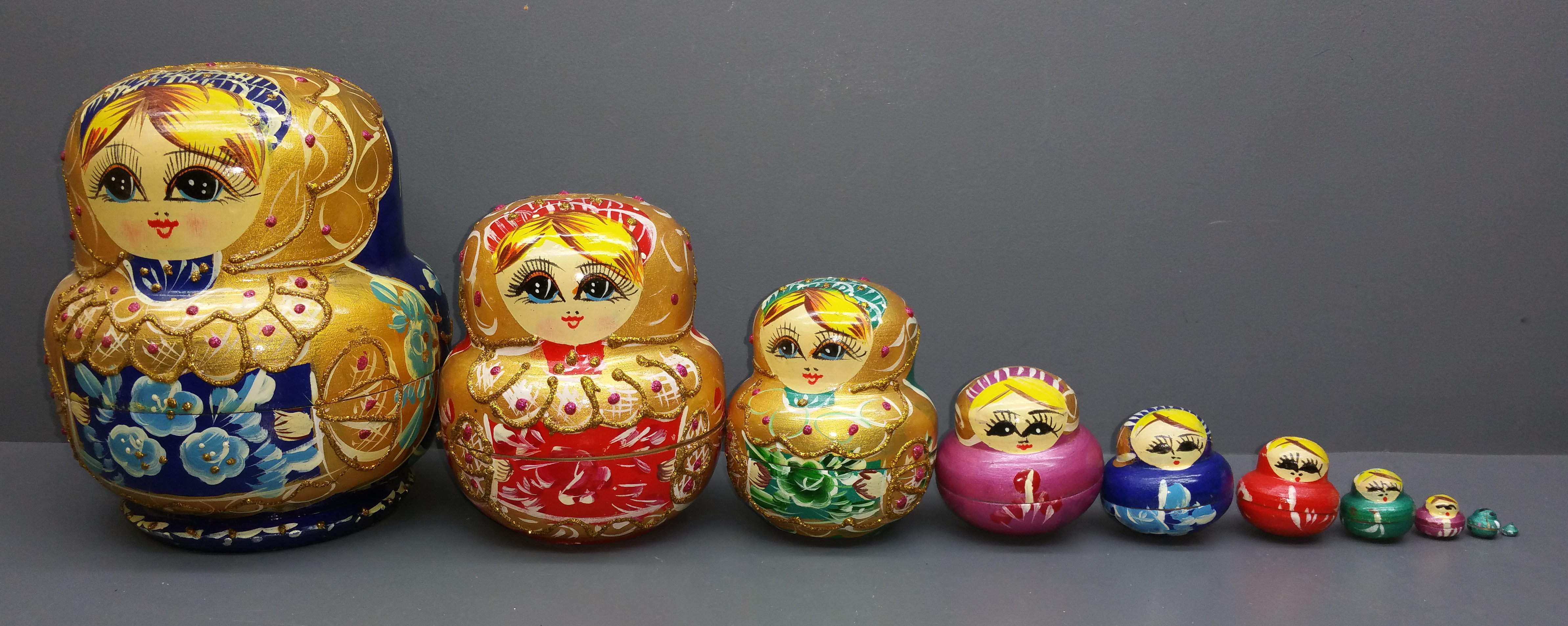 Das klassische russische Spielzeug jetzt für die Kleinen! Dieses wunderschöne 7-teilige Matroschka Set begeistert Kinder ab 3 Jahren und Erwachsene gleichermaßen. Die größte Puppe misst ca. 16-17 cm und verbirgt in sich sechs weitere, immer kleiner werdende Schwestern. Jede Puppe ist liebevoll handbemalt - dadurch kann es zu leichten Farbabweichungen kommen, was den Charme echter Handarbeit unterstreicht. Perfekt für erste Zuordnungsspiele, um Größen und Formen zu lernen. Die Puppen fördern die Feinmotorik und das räumliche Denken der Kinder. Aus hochwertigem, glatt geschliffenem Holz gefertigt, das angenehm in der Hand liegt. Ein zeitloses Spielzeug, das Generationen überdauert und zu einem echten Familienschatz werden kann. Ob als Geschenk zur Geburt, zum Geburtstag oder einfach als schöne Deko fürs Kinderzimmer - diese Matroschkas bringen russische Folklore in dein Zuhause. Einfach auseinandernehmen, wieder zusammensetzen und staunen!