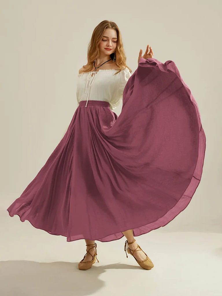 Damen Maxi-Rock Renaissance Style - Doppellagig & Elastische Taille