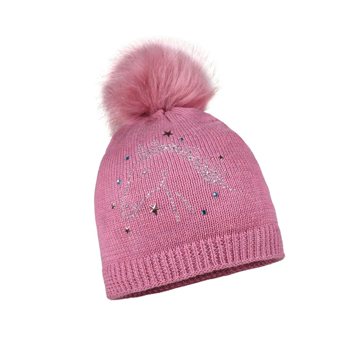 Maximo MINI Mädchen-Mütze Mit Pferd Strass - Warme Wintermütze Mit Kunstfell-Bommel