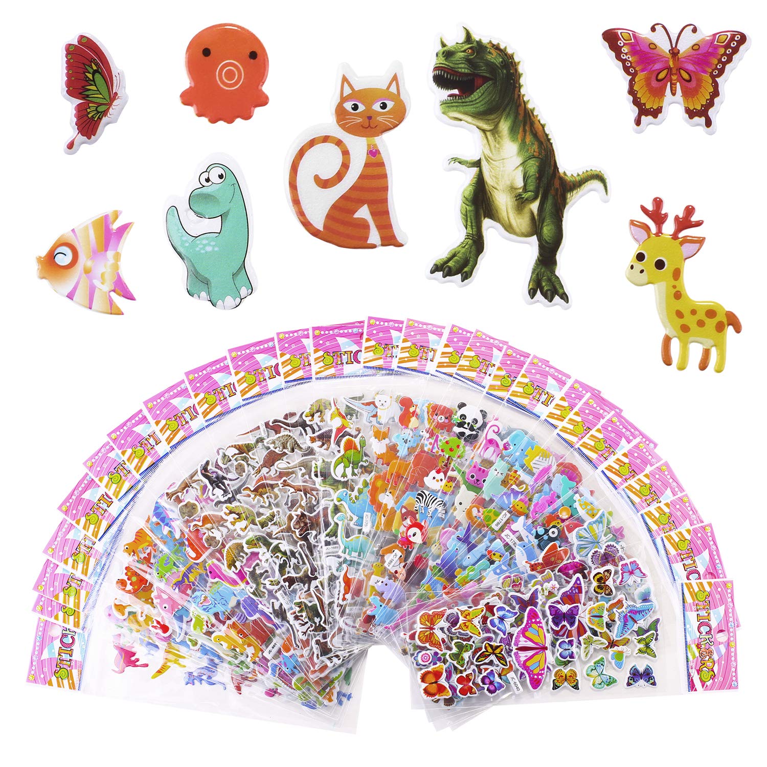 Meafeng 3D Aufkleber Für Kinder - 8 Blätter Puffy Sticker Dinosaurier & Tiere