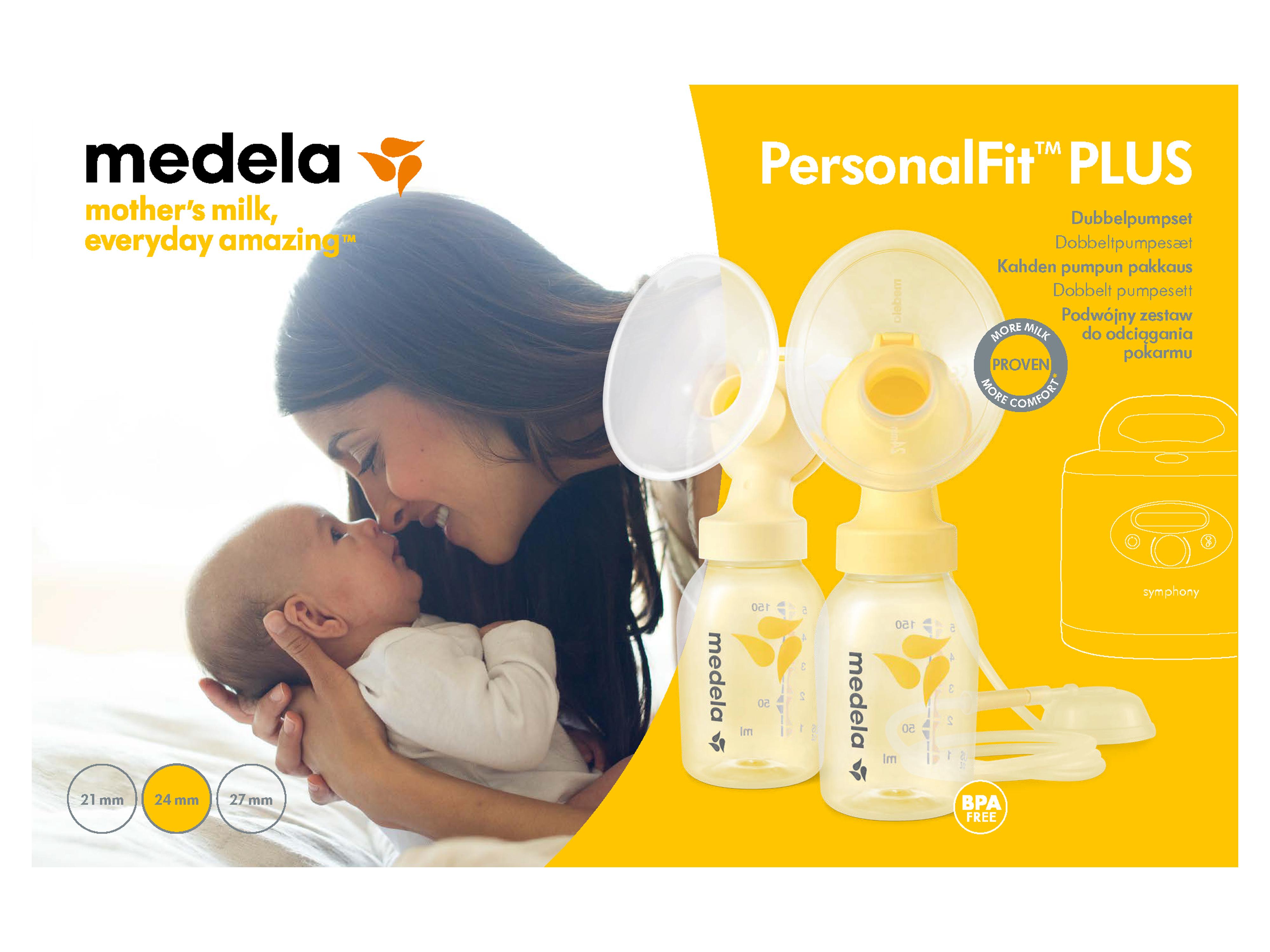 Komplett BPA-frei - absolut sicher für dein Baby. Einfach an der Symphony Pumpe befestigen und loslegen. Die weichen Brusthauben passen sich optimal an für maximalen Komfort.